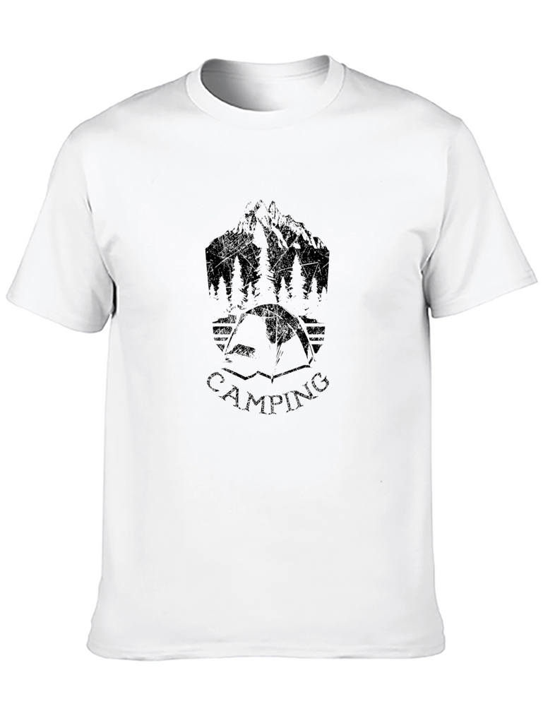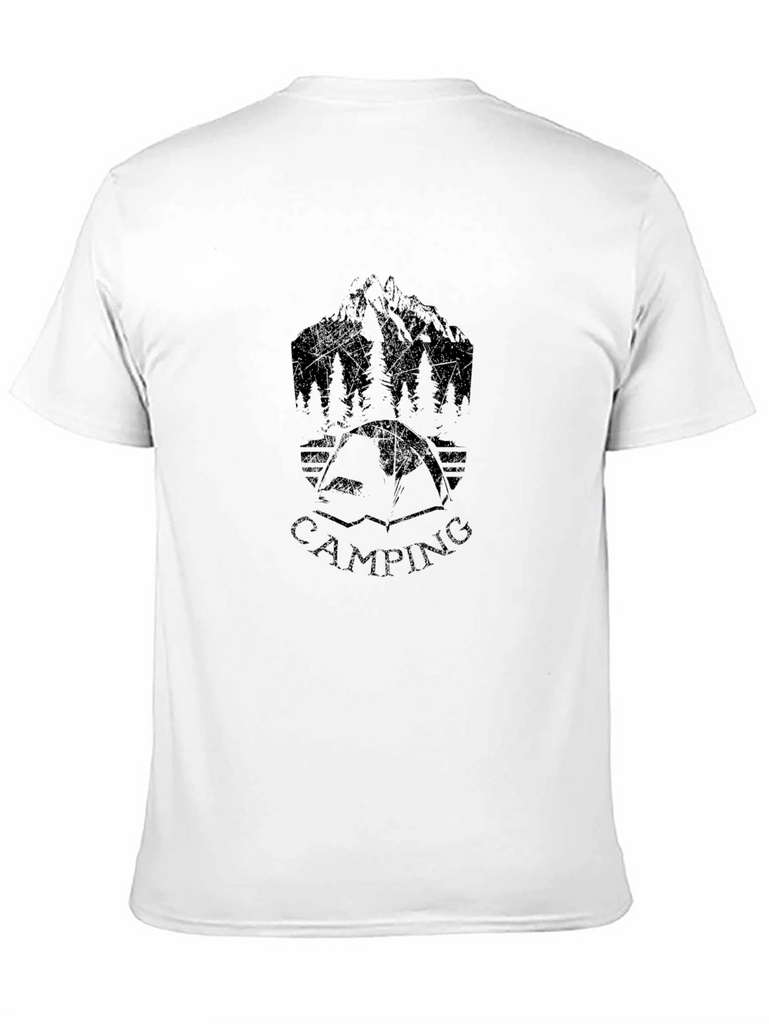 Show off your love for the great outdoors with this stylish black t-shirt! Featuring a cool camping-themed graphic design, including a mountain range, trees, and a tent with the word "CAMPING" written below. This comfortable tee is perfect for everyday wear or your next camping adventure. The dark color makes it versatile for any outfit, while the unique print adds a touch of personality. Made from a soft fabric, this tee ensures all-day comfort. Whether you're hitting the trails or just relaxing at home, this t-shirt is a must-have for any outdoor enthusiast.