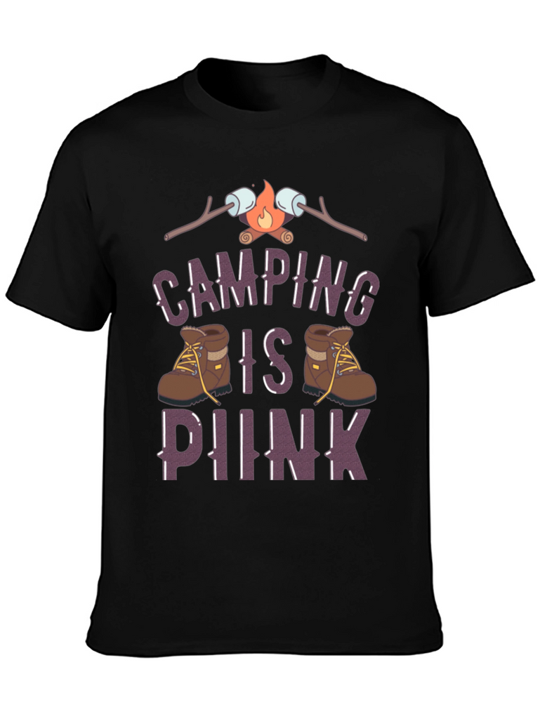 Embrace your love for the outdoors with this unique graphic t-shirt. Featuring a fun design with hiking boots and a campfire with marshmallows, this tee perfectly captures the spirit of camping and hiking adventures. The design is printed on a classic black t-shirt, making it a versatile addition to your wardrobe. Made from a comfortable fabric, this shirt is ideal for casual wear, camping trips, or simply showing off your passion for the outdoors. Get yours today and let your love for nature shine!