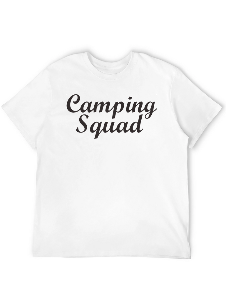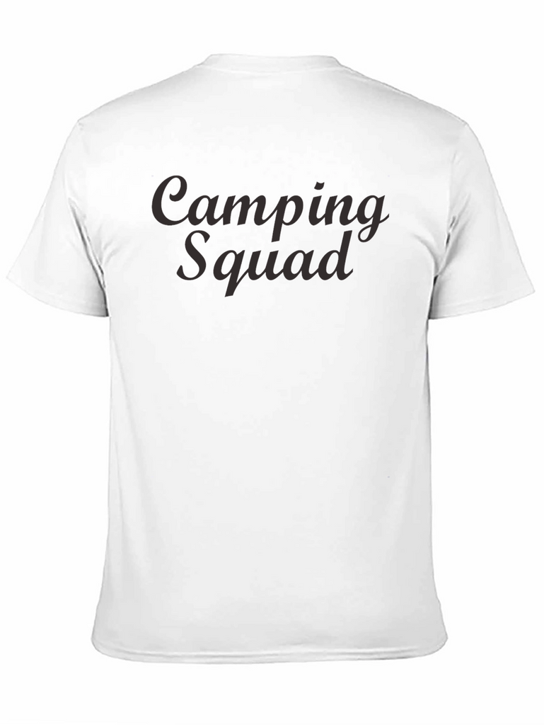 Gear up for your next outdoor adventure with this stylish and comfortable 'Camping Squad' t-shirt. Crafted from a soft-looking, dark-colored fabric, this tee features a classic crew neck and short sleeves, ensuring a relaxed fit for all your camping activities. The prominent 'Camping Squad' text adds a touch of fun and camaraderie, perfect for group camping trips or solo explorations. Whether you're roasting marshmallows around the campfire, hiking through scenic trails, or simply enjoying the tranquility of nature, this t-shirt is an ideal choice. Its casual design pairs well with jeans, shorts, or hiking pants, making it a versatile addition to your wardrobe. Embrace the spirit of adventure and show off your love for the great outdoors with this must-have tee!