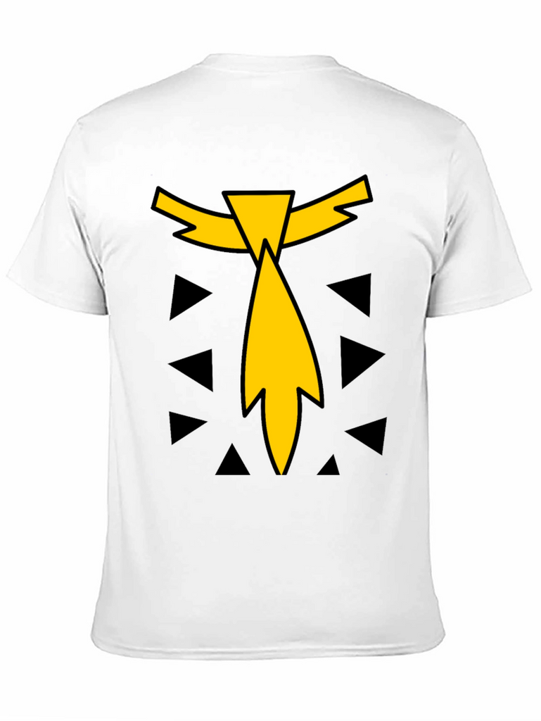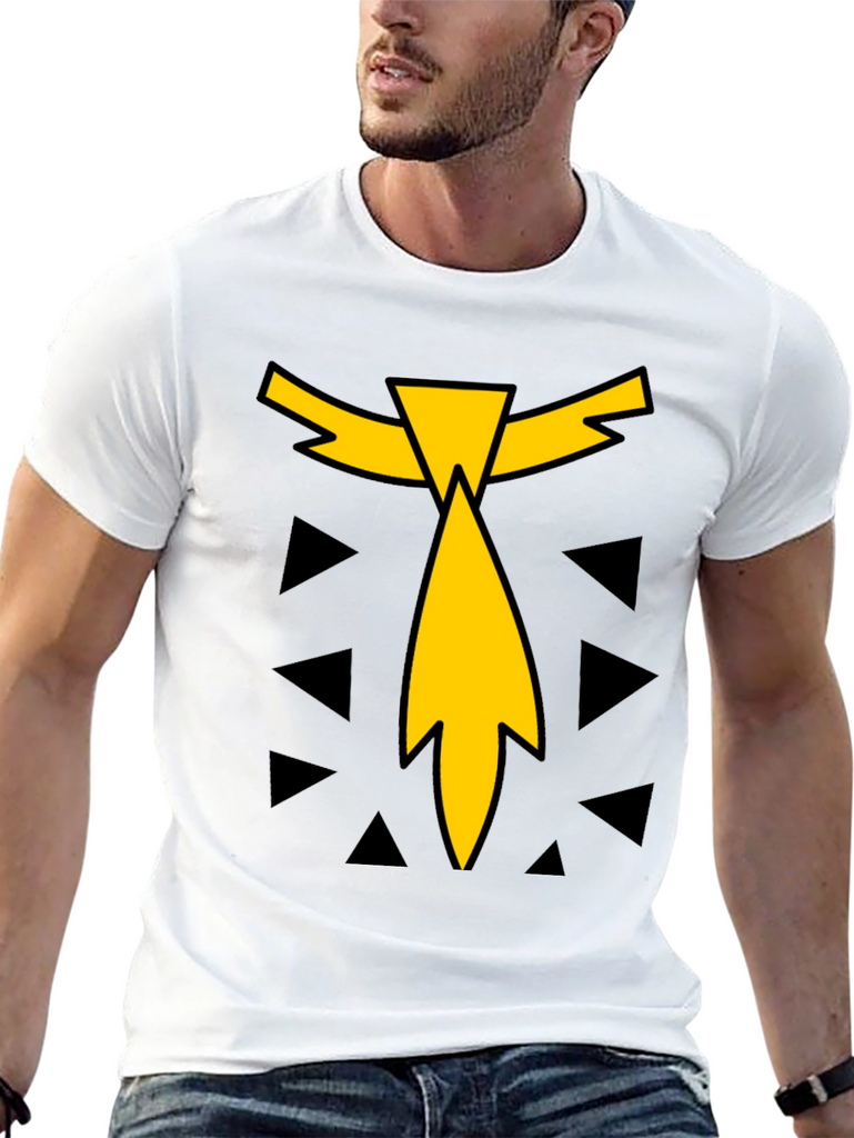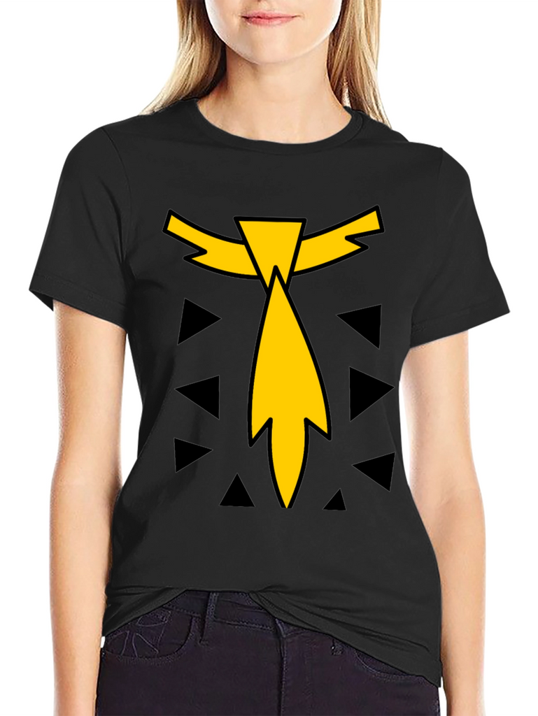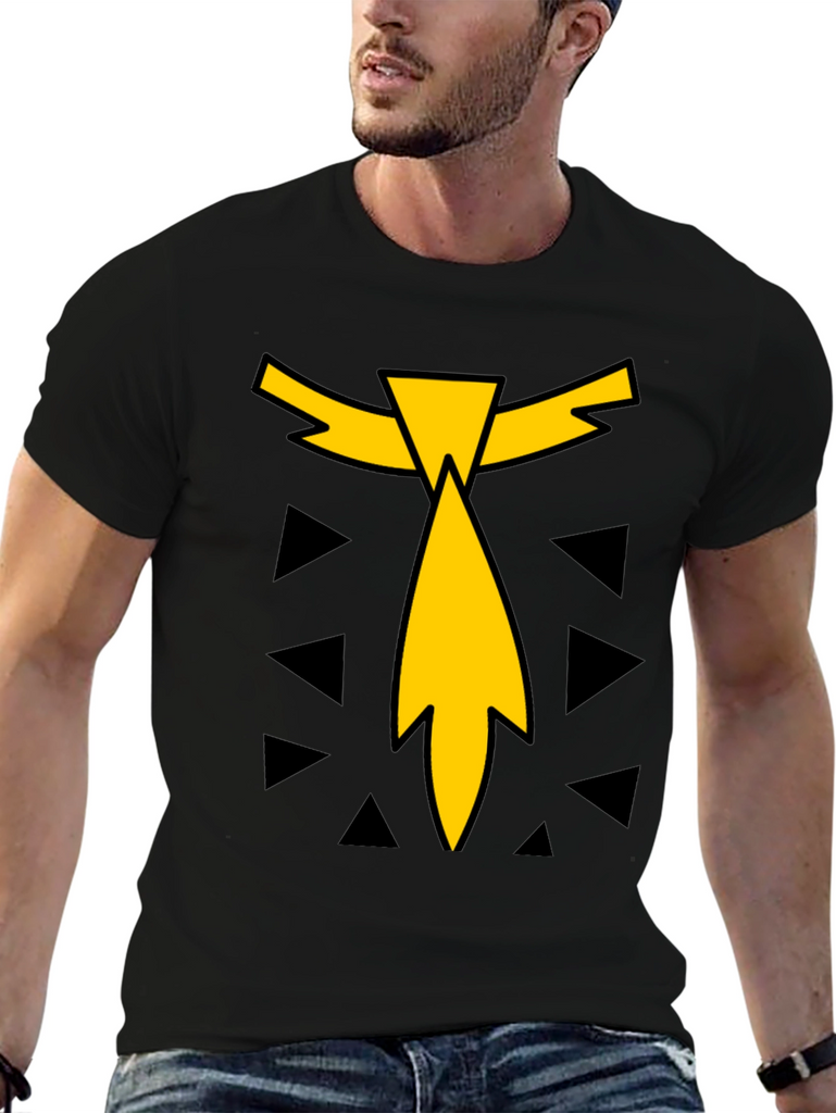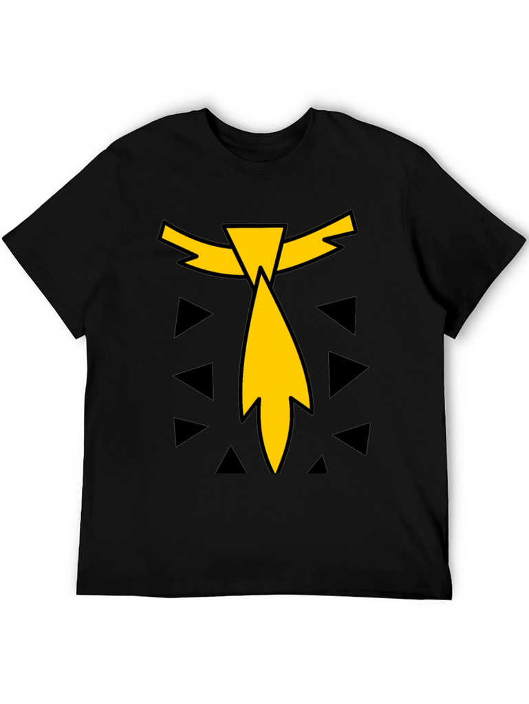 Rock a touch of nostalgia with this eye-catching black T-shirt. Featuring a vivid yellow cartoon character costume design, with necktie and jagged stone pattern that adds a playful and recognizable element. Made from a comfortable, breathable fabric, this tee is perfect for casual wear, costume parties, or showing off your unique style. The bold graphic print stands out, making it a great conversation starter. Add a bit of fun to your wardrobe with this unique and stylish tee, ideal for fans of the classic cartoon.