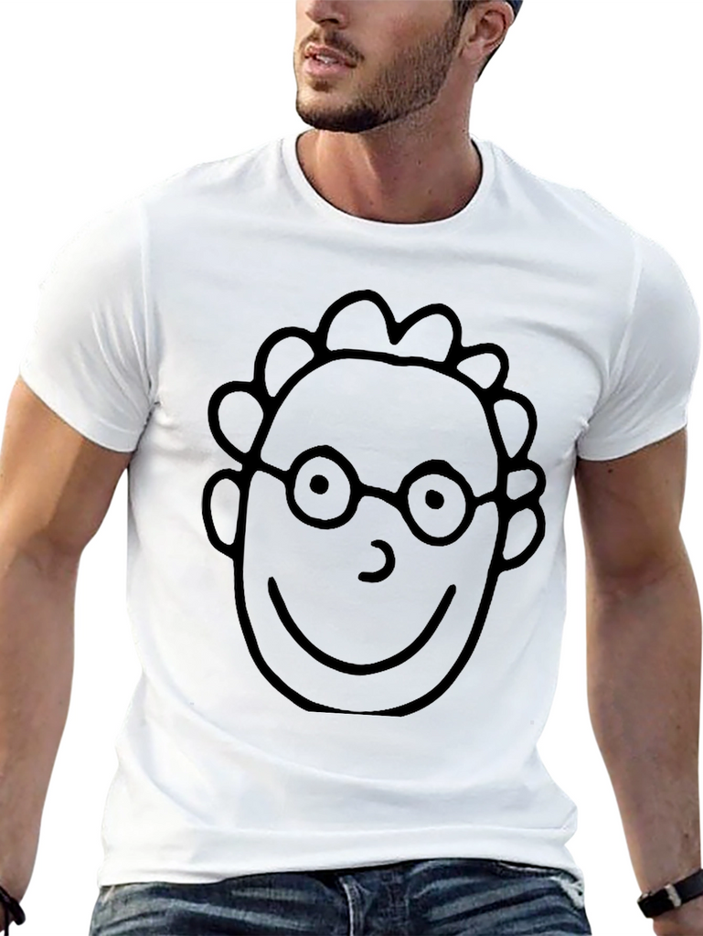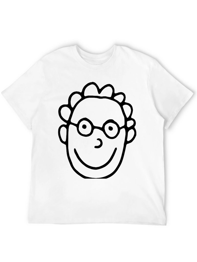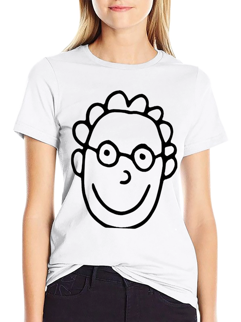 Show off your playful side with this unique black t-shirt. Featuring a quirky cartoon-style face with curly hair and glasses, this tee is sure to spark conversation. The design is simple, yet eye-catching, making it a great addition to your casual wardrobe. Made from comfortable, breathable fabric, it's perfect for everyday wear, hanging out with friends, or adding a touch of whimsy to your outfit. Pair it with jeans, shorts, or a skirt for a fun and relaxed look. This t-shirt is a must-have for anyone who loves to express their individuality through fashion.