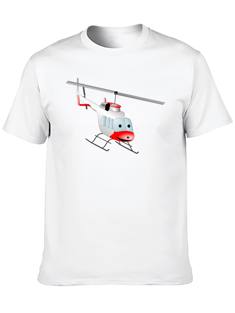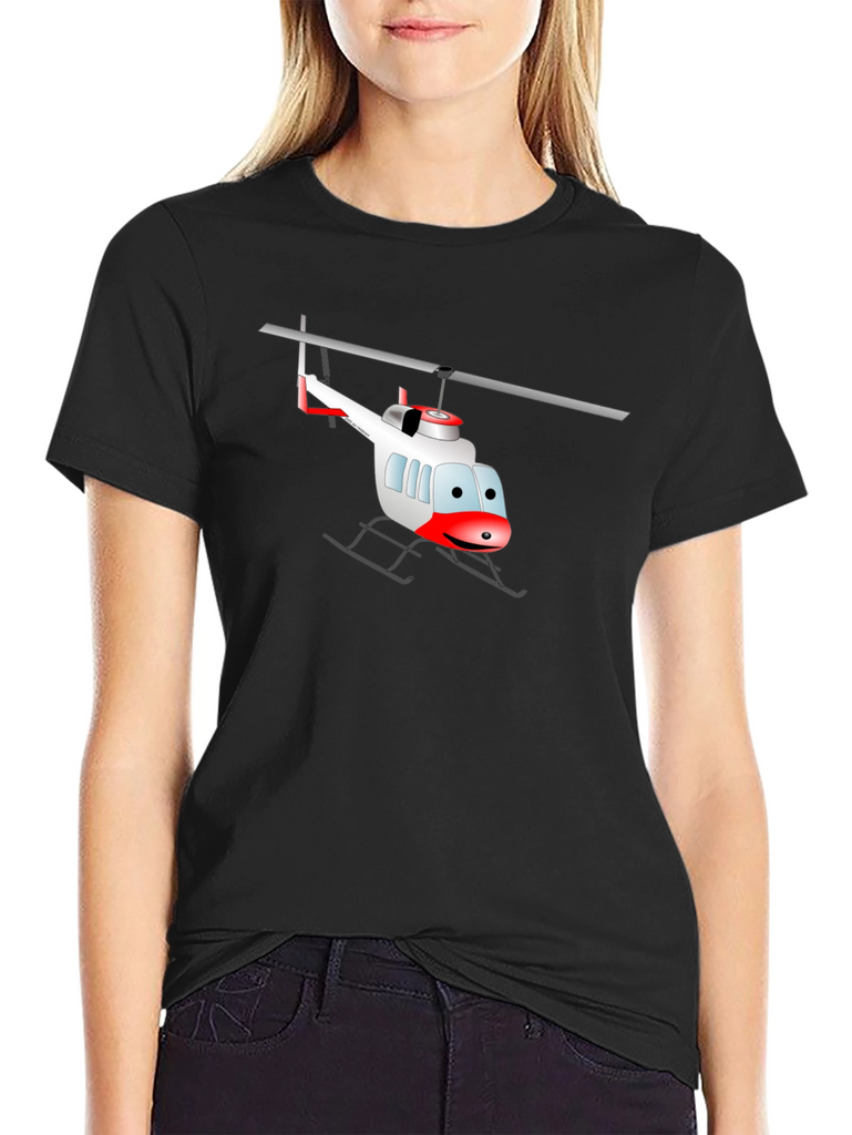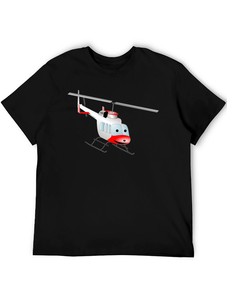 Soar into style with this eye-catching black t-shirt! This tee features a whimsical cartoon helicopter graphic. The playful design makes it a standout piece. Perfect for casual outings or adding a fun twist to your everyday look. This comfortable tee will quickly become a favorite in your wardrobe. Pair it with jeans, shorts, or your favorite bottoms for an effortlessly cool vibe. Show off your unique personality and grab yours today!