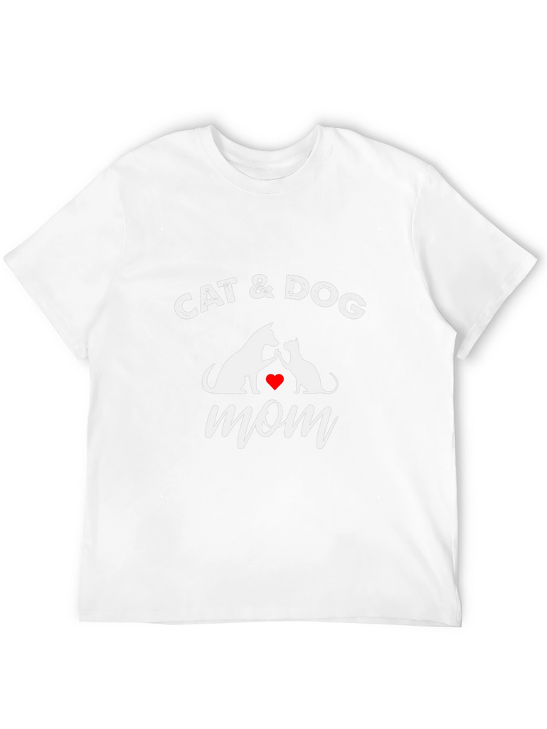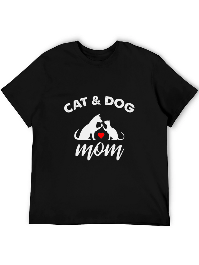 Show your love for your furry friends with this stylish black t-shirt. Featuring a charming design with a silhouette of a cat and dog touching noses above a red heart and the word 'mom,' this shirt is perfect for any proud pet parent. Made from a comfortable, breathable fabric, this tee is ideal for everyday wear, whether you're running errands, relaxing at home, or taking your beloved companions for a walk. A must-have addition to any pet lover's wardrobe, this shirt is sure to become a favorite.