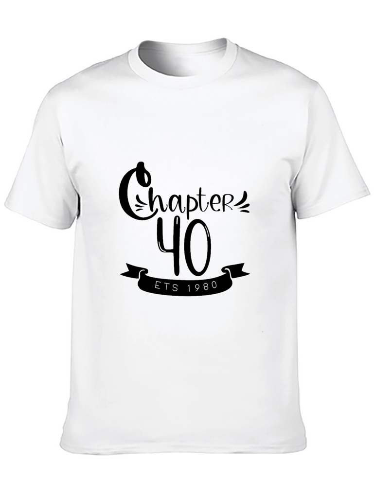 Celebrate a milestone with this classic black graphic t-shirt! Featuring the text "Chapter 40" and "ETS 1980" in a stylish design, this shirt is perfect for marking a special birthday or anniversary year. Made from comfortable material, it's ideal for casual wear or as a unique gift. The simple yet eye-catching graphic makes it a standout piece in any wardrobe. Show off your style with this distinctive and memorable t-shirt.