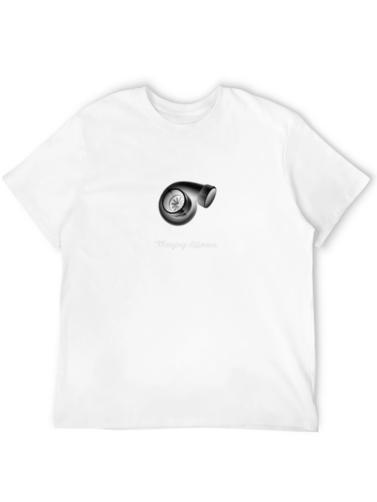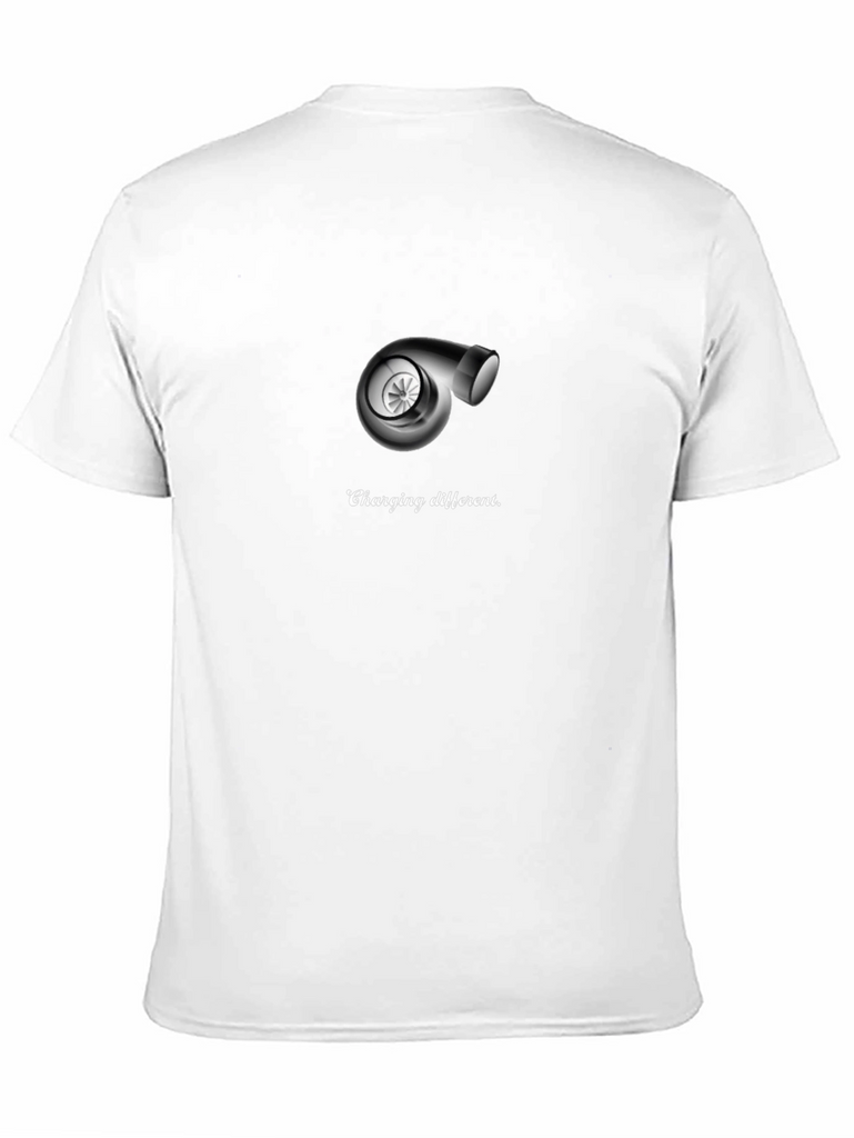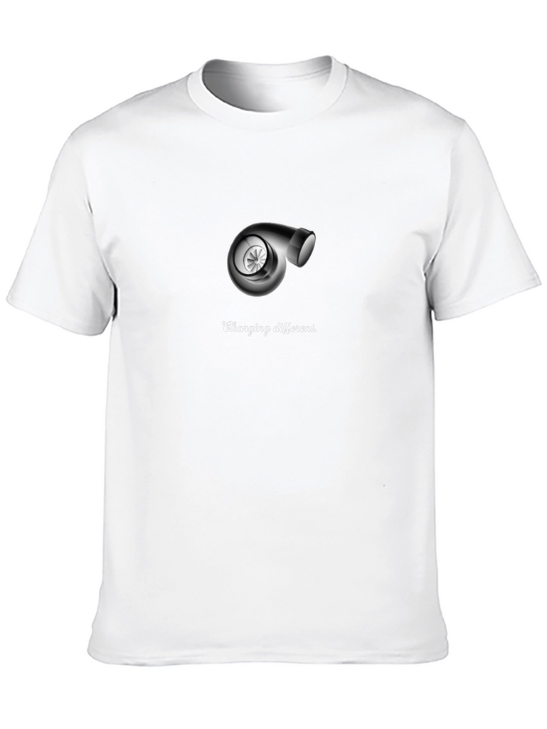 Showcase your unique style with this black T-shirt featuring a striking graphic of a turbocharger and the playful phrase "Charging Different." Made from comfortable, breathable fabric, this shirt is perfect for everyday wear or to express your passion for cars and engines. The high-quality print ensures the design remains vibrant wash after wash. This tee is a conversation starter, great for casual outings, car meets, or simply relaxing at home. Make a bold statement and stand out from the crowd with this one-of-a-kind Turbo T-shirt.