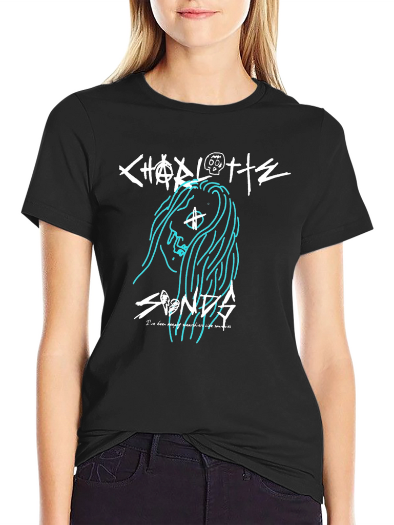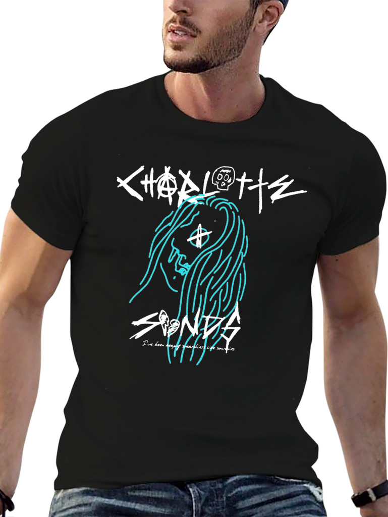 Show your love for Charlotte Sands with this unique graphic t-shirt. The shirt features a bold design with Charlotte Sands' name and an artistic image, perfect for fans and music lovers alike. Made from a soft, comfortable fabric, this t-shirt is ideal for everyday wear, concerts, or casual outings. The black color makes the design pop. Whether you're heading to a show or just hanging out, this Charlotte Sands t-shirt lets you show off your style and support your favorite artist.