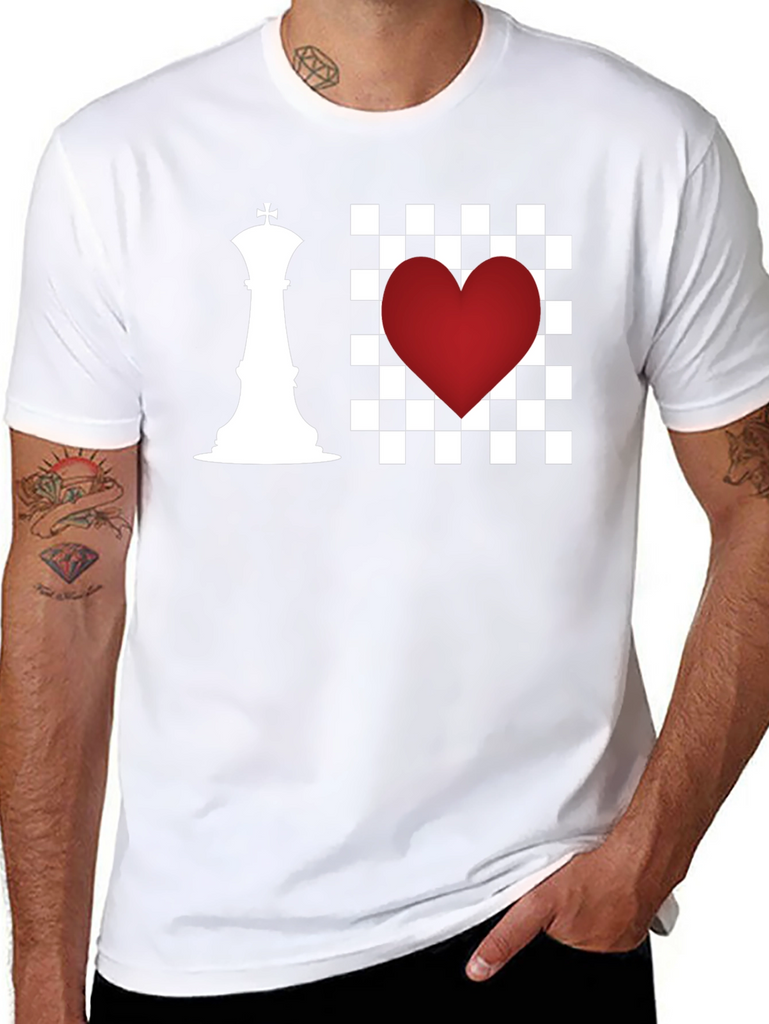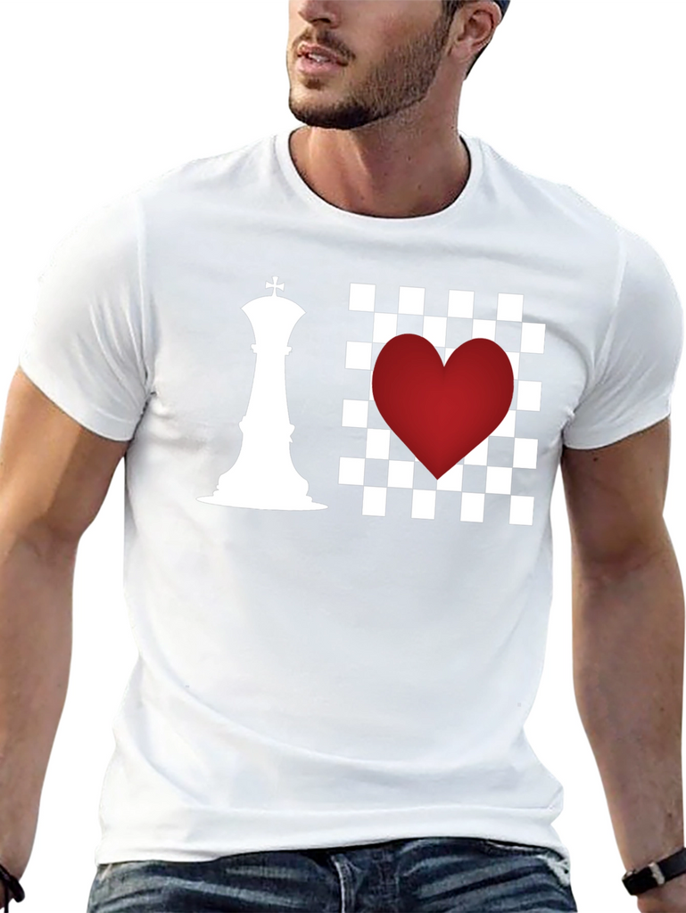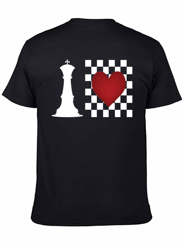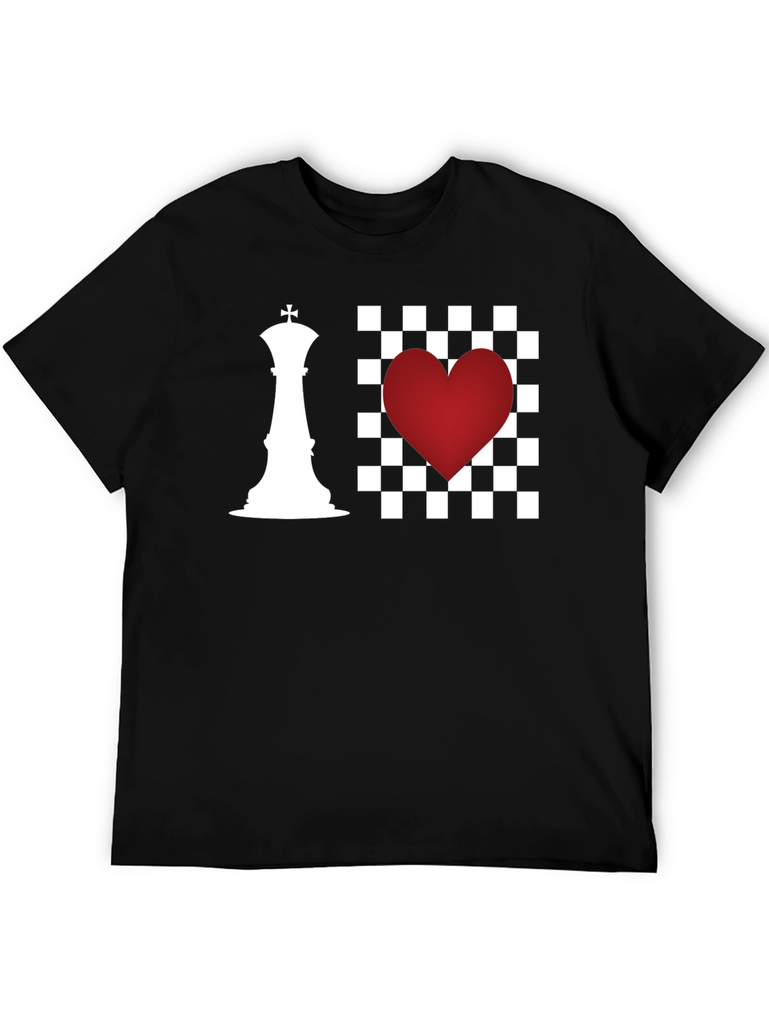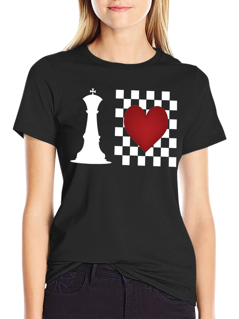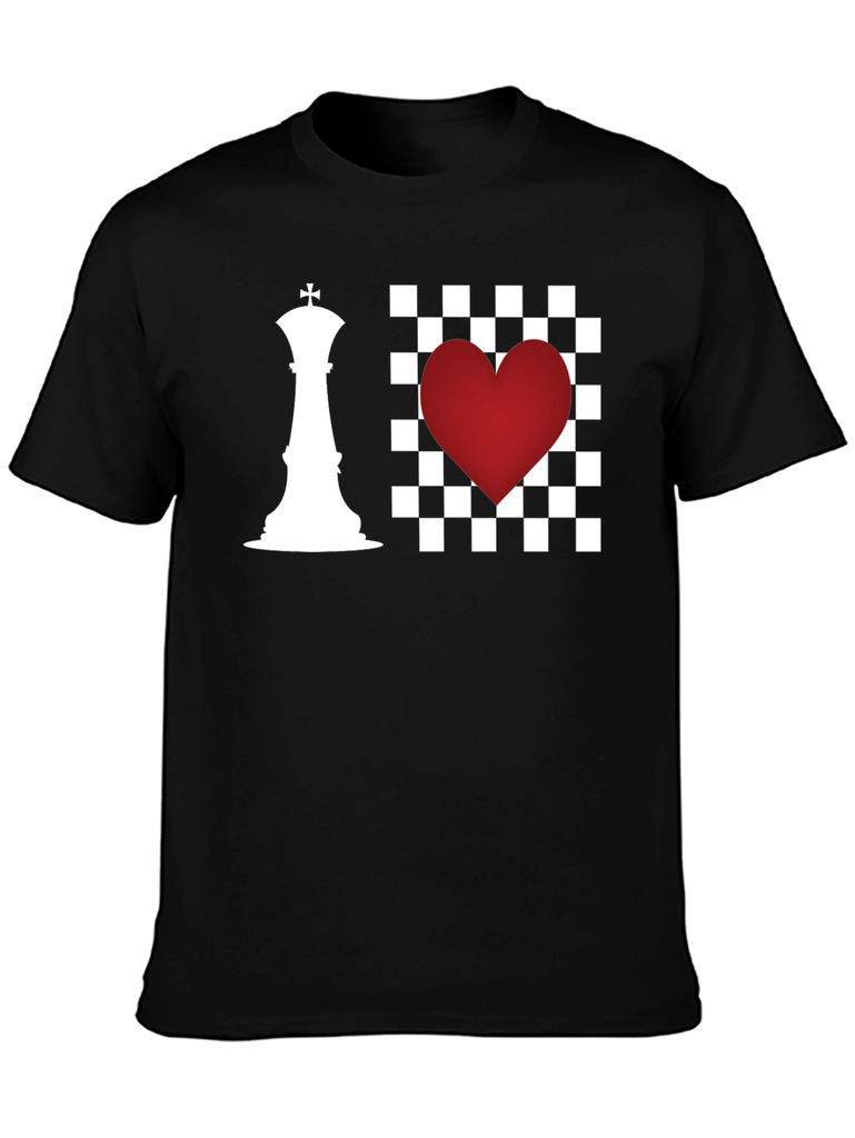 Show your love for chess with this unique t-shirt! This classic black tee features a bold design incorporating a white chess queen, a red heart, and a checkerboard pattern, making it perfect for chess enthusiasts. Crafted from comfortable materials, this shirt is ideal for casual wear, chess club meetings, tournaments, or simply expressing your passion for the game. Stand out from the crowd and spark conversations with this eye-catching and conversation-starting piece of apparel. A perfect gift for chess players of all levels!