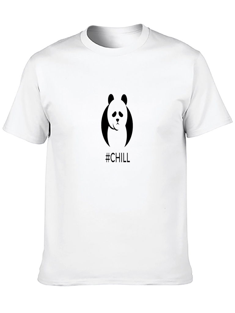 Embrace effortless style with this Chill Panda graphic tee. Crafted from soft, breathable fabric, this black t-shirt features a minimalist panda design with the word '#CHILL' below, conveying a laid-back vibe. The classic crew neck and relaxed fit make it ideal for casual everyday wear. Perfect for lounging at home, running errands, or meeting up with friends, this tee offers both comfort and style. Show off your chill attitude with this easy-to-wear and eye-catching graphic tee. A must-have addition to your wardrobe!