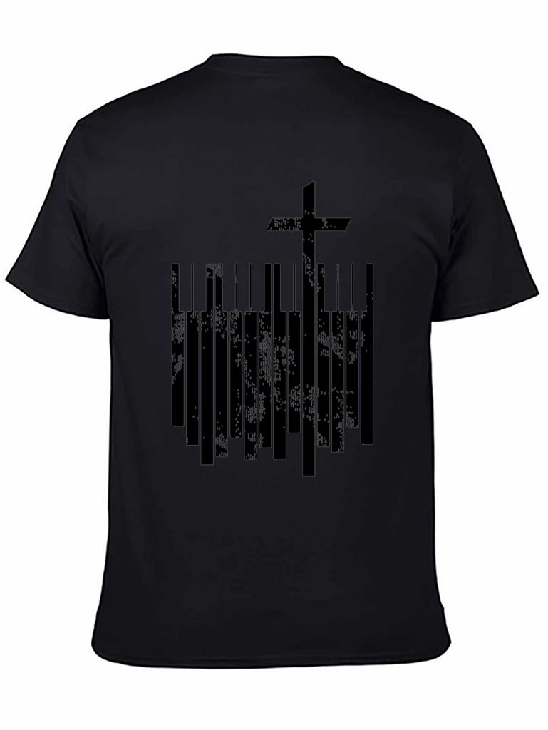 Show your faith with this stylish black t-shirt featuring a modern design of a Christian cross. The cross is integrated with vertical bars creating a unique and eye-catching graphic. Made from comfortable fabric, this tee is perfect for everyday wear, church events, or casual outings. Express your beliefs with confidence and style. A subtle yet powerful statement piece for anyone proud of their Christian faith. This shirt is also ideal as a thoughtful gift for friends, family, or loved ones who share the same values. Get yours now and spread the message!