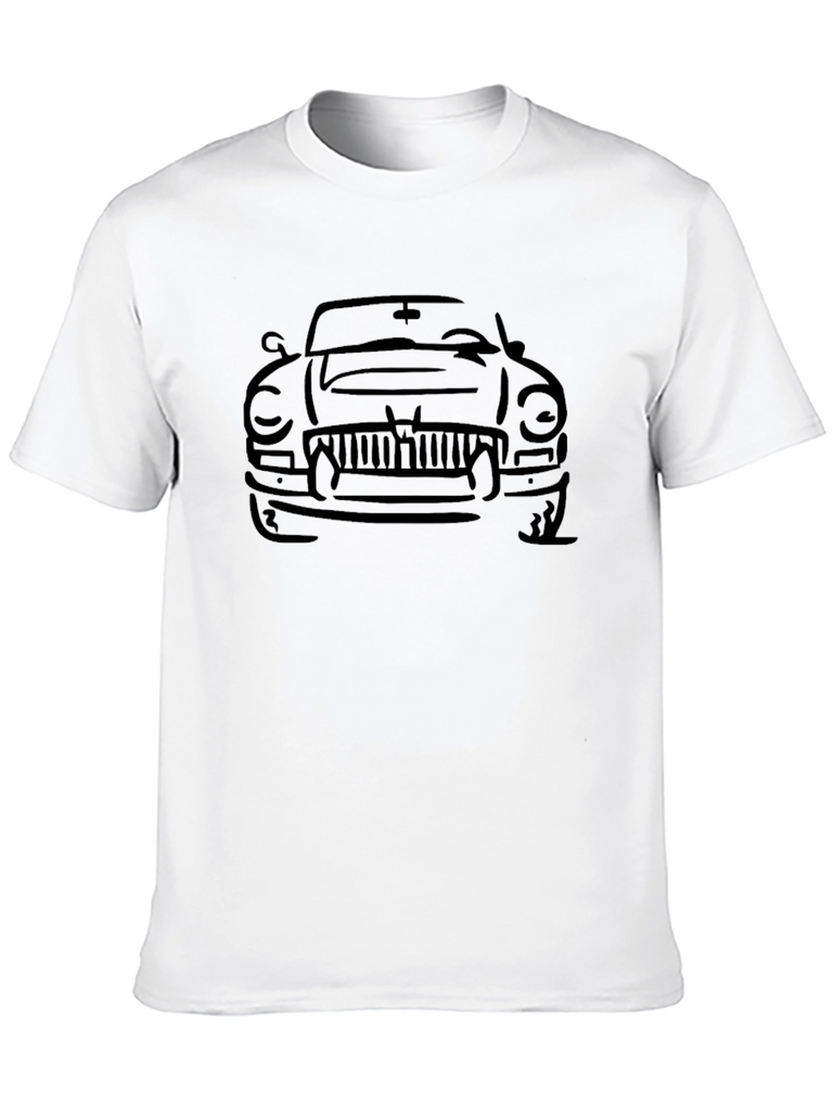 This black t-shirt features a minimalist, outlined graphic of a classic car on the front. The design is simple yet stylish, making it perfect for car enthusiasts or anyone who appreciates a clean, modern look. Made from a soft, comfortable fabric, this tee is ideal for everyday wear. The short sleeves and classic crew neck make it a versatile addition to any wardrobe. Wear it casually with jeans, or dress it up with a jacket. A great choice for those who love vintage automobiles and understated style. Show off your passion for classic cars with this unique t-shirt!