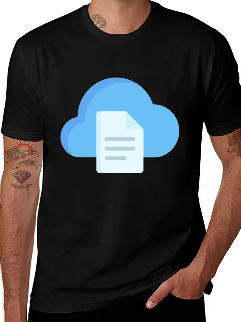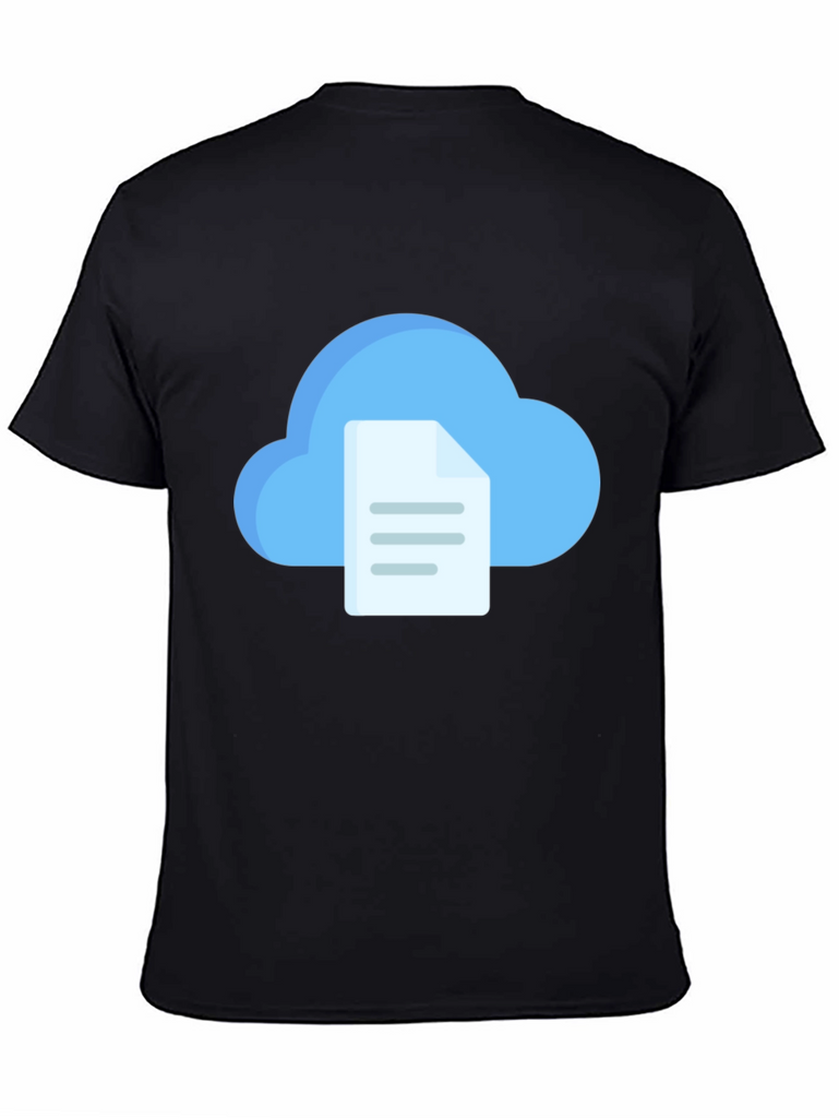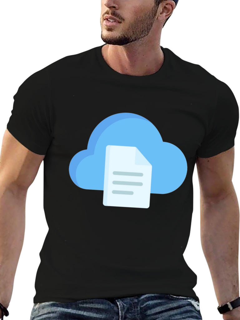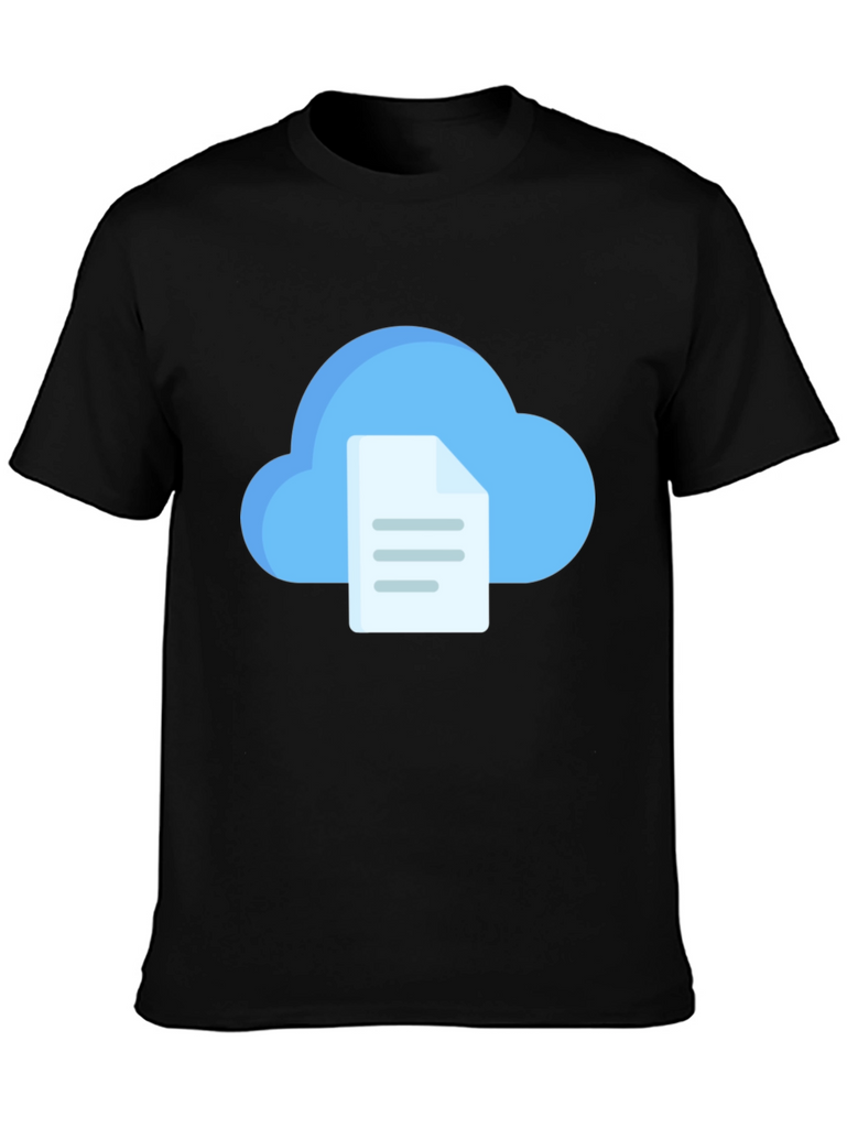 Elevate your casual style with this unique black t-shirt. Featuring a vibrant graphic of a cloud paired with a file, it's perfect for tech enthusiasts and anyone who loves modern designs. Made from comfortable, breathable fabric, this tee is ideal for everyday wear. Showcase your individuality with this eye-catching t-shirt that blends comfort and contemporary flair. Whether you're heading to a casual outing or relaxing at home, this piece will be a stylish addition to your wardrobe. Get yours today and make a statement!