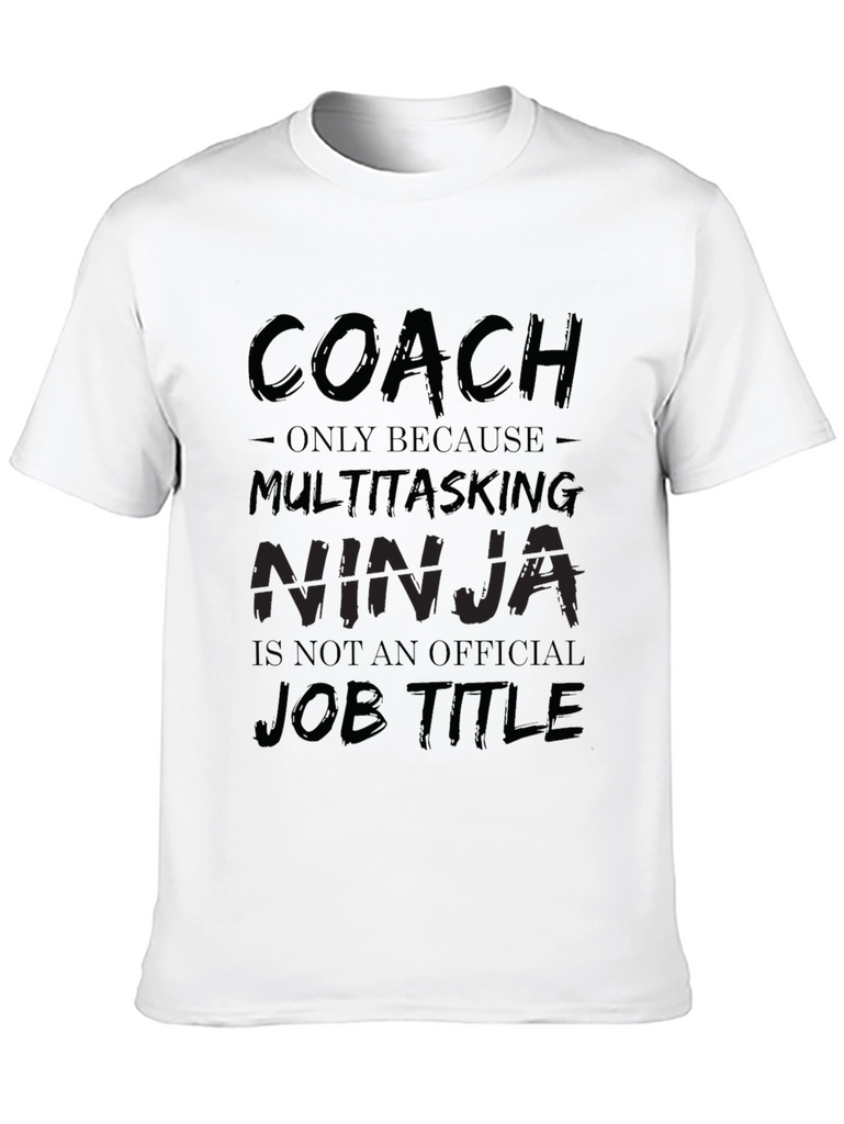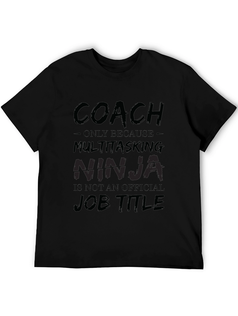 This black t-shirt features a humorous design, perfect for coaches with a sense of humor. The shirt reads "COACH - ONLY BECAUSE - MULTITASKING NINJA - IS NOT AN OFFICIAL - JOB TITLE" in a slightly distressed font. Made from what appears to be soft and comfortable cotton, this tee offers both style and comfort. Ideal for casual wear, coaching sessions, or as a fun gift for your favorite coach. Show off your multitasking prowess with this unique and witty t-shirt!