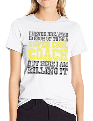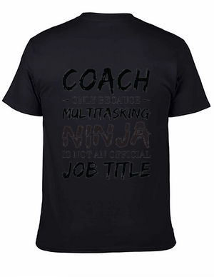 Show your appreciation for a great coach with this inspiring t-shirt! The black tee features a bold graphic design with the phrase "Our Coach Leads by Example." Underneath the phrase are qualities of a great coach, such as "Dedicated & Determined" and "Teaches Teamwork Motivates." A stylized whistle design adds a sporty touch. This comfortable shirt is perfect for coaches, assistant coaches, or anyone who admires a leader. Wear it to practices, games, or as everyday wear to show your team spirit! It's a great gift to recognize a coach's hard work and dedication.