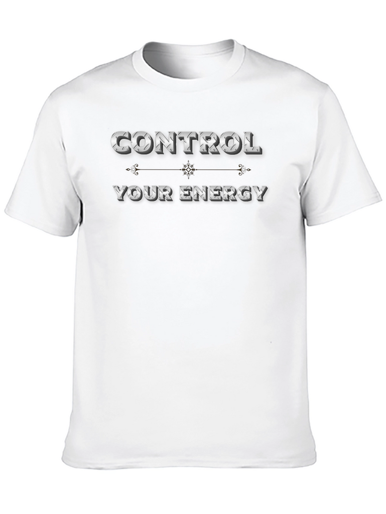 This stylish black t-shirt features a bold graphic design with the words "CONTROL YOUR ENERGY" in a cool, textured font. The design offers a modern and motivational aesthetic. Made from what appears to be soft and breathable cotton, this tee is perfect for everyday wear. Whether you're hitting the gym, running errands, or just lounging at home, this shirt will keep you comfortable and looking great. Its versatile design makes it easy to pair with jeans, shorts, or even a casual jacket. Show the world you're focused and in control with this unique and eye-catching t-shirt.
