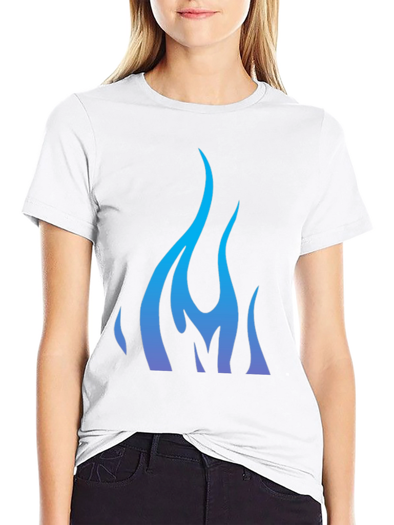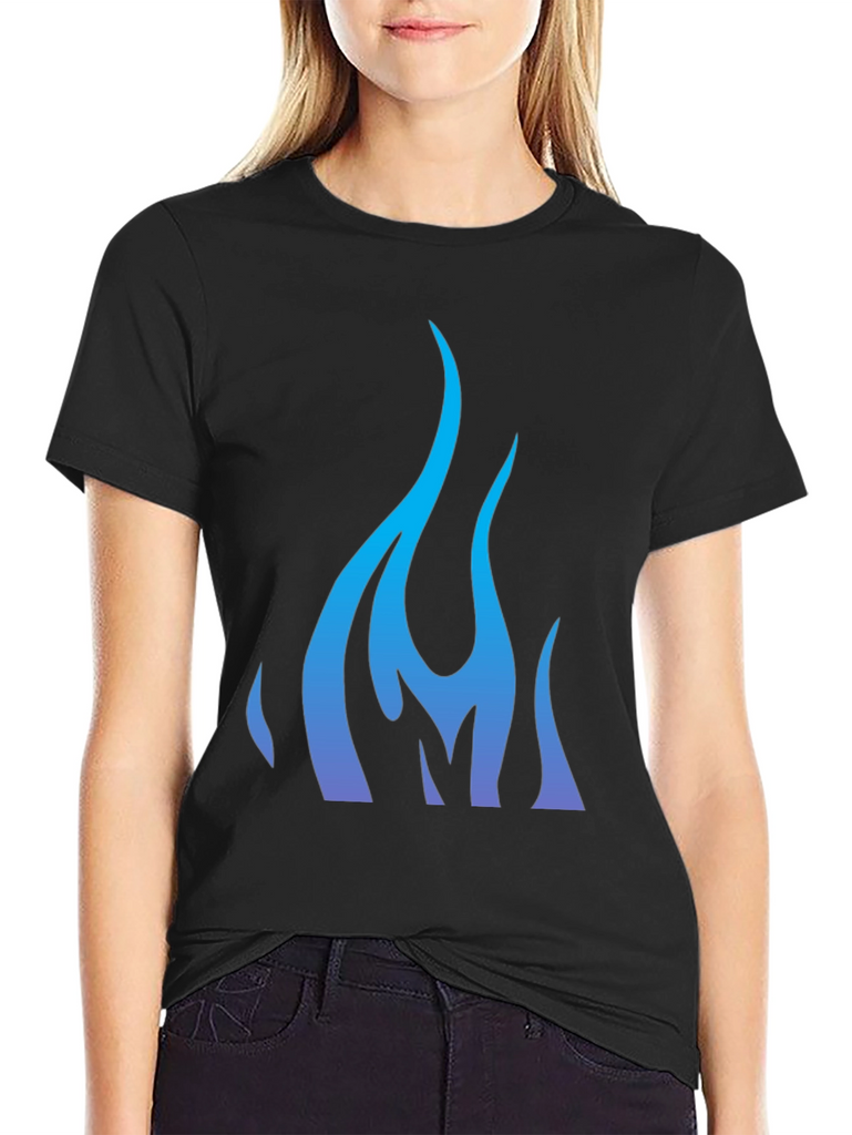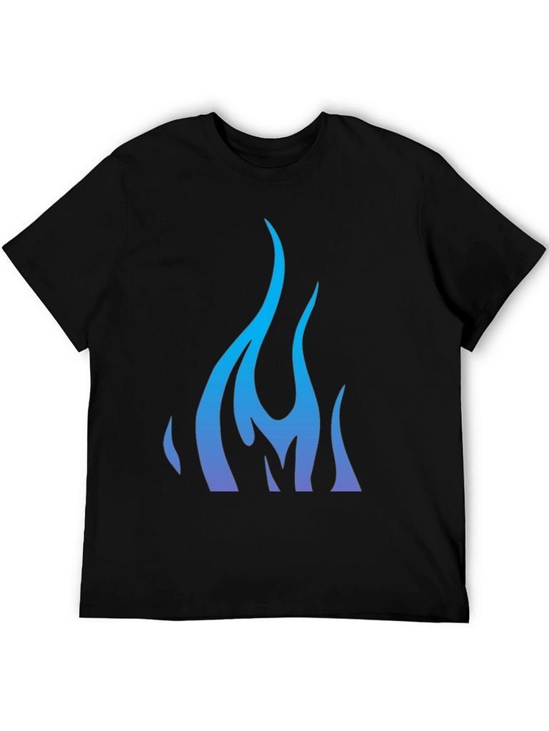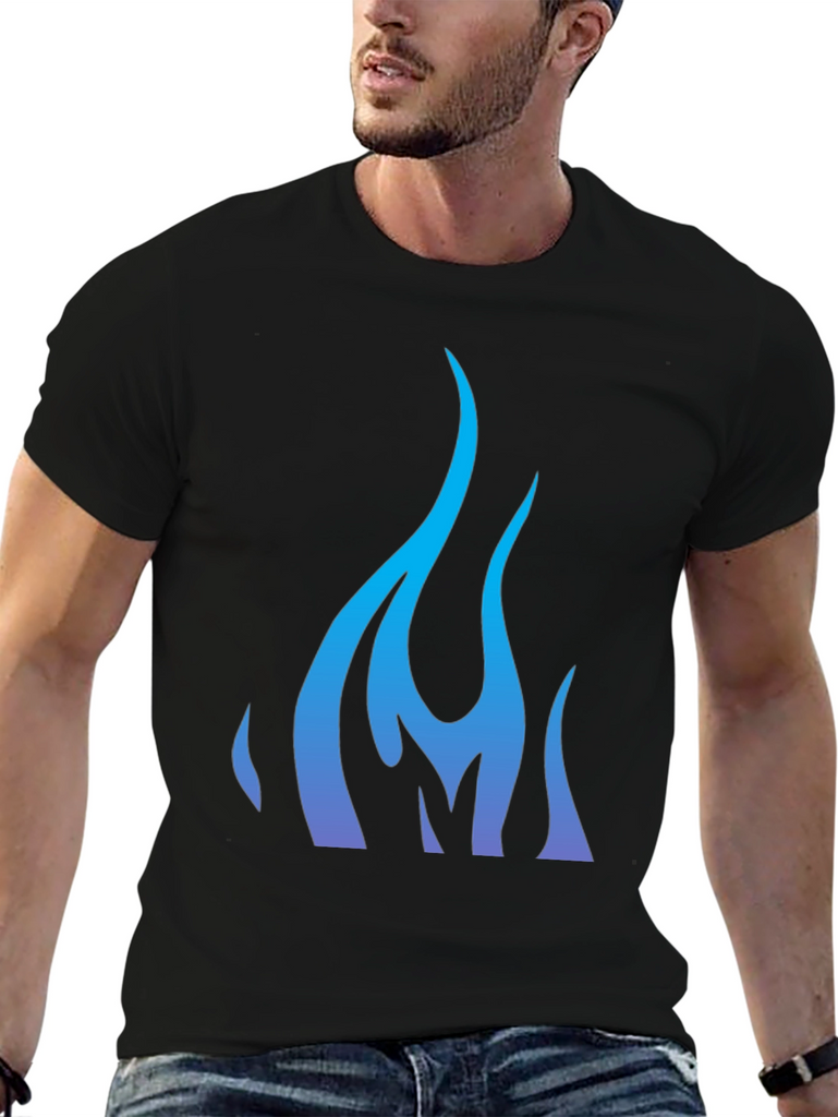 Ignite your style with this striking black t-shirt featuring a captivating blue flame graphic. The vibrant gradient design adds a touch of modern flair to this classic tee. Made from comfortable, breathable fabric, this shirt is perfect for everyday wear. Whether you're hitting the streets or relaxing with friends, this bold statement piece will set you apart. Embrace the heat and showcase your unique personality with this eye-catching t-shirt. Sure to turn heads, this tee offers a comfortable fit and a memorable look, making it a must-have for those who dare to stand out.