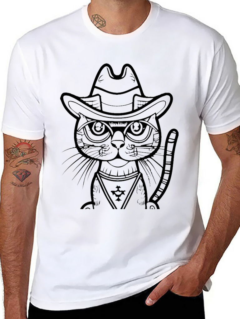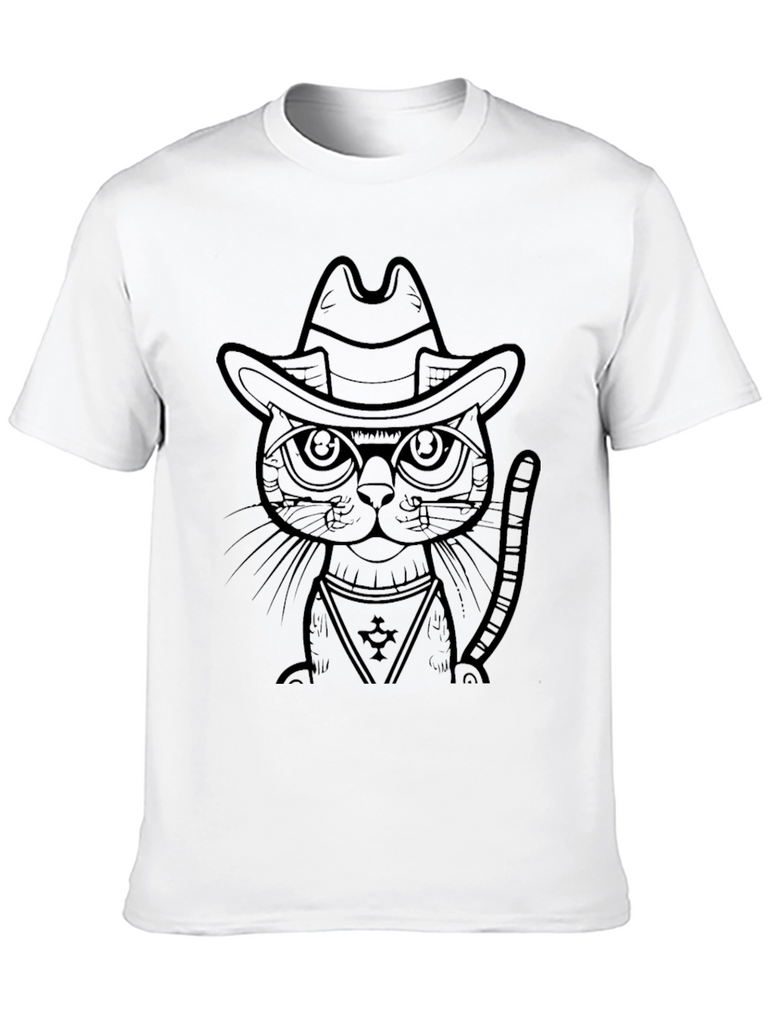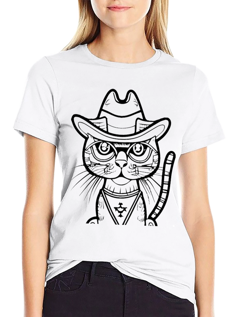 Show off your quirky side with this black t-shirt featuring a cat dressed as a cowboy! The cool feline is sporting a hat and sheriff star, making it a fun and unique addition to your wardrobe. Made from comfortable material, this tee is perfect for casual wear, outings with friends, or even as a conversation starter. Embrace your love for cats and the wild west with this must-have t-shirt. It’s a great way to express your personality and stand out from the crowd. Get yours today and add a touch of humor to your style!