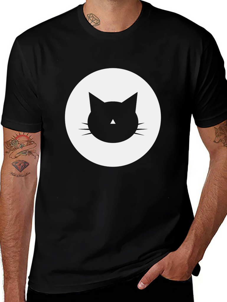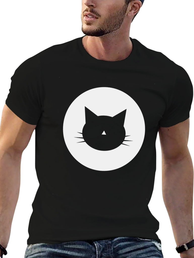 Show off your love for feline friends with this stylish black t-shirt. The shirt features a bold, minimalist cat graphic in a white circle. Made from a soft, breathable fabric, this tee offers all-day comfort and a relaxed fit. It's perfect for casual wear, lounging at home, or making a statement wherever you go. Easy to pair with jeans, shorts, or leggings for a versatile look. Ideal for cat lovers and anyone who appreciates unique, eye-catching designs. Get yours today and unleash your inner cat enthusiast!