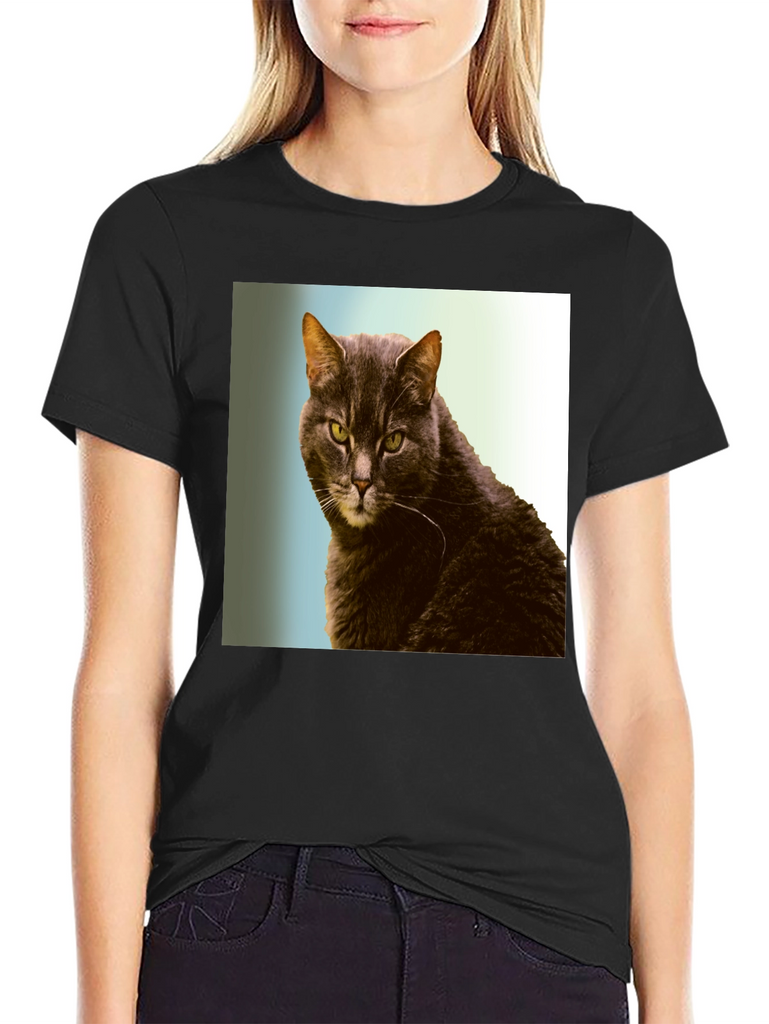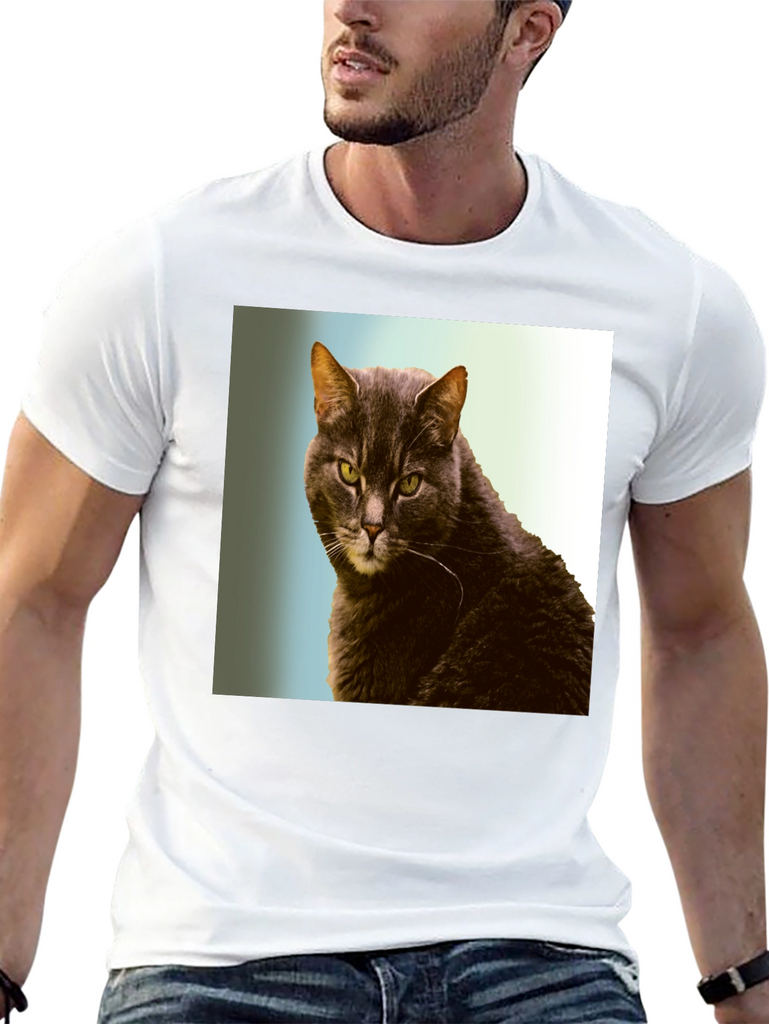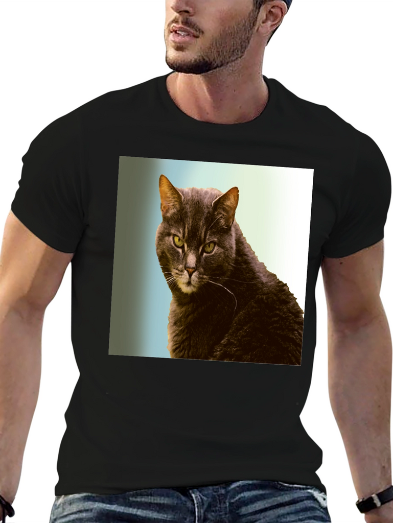 Show off your love for cats with this stylish black t-shirt. Featuring a striking, high-quality print of a gray tabby cat, this tee is sure to turn heads. Made from soft and breathable cotton, it offers all-day comfort. The classic fit makes it a versatile addition to any wardrobe. Perfect for casual outings, lounging at home, or as a unique gift for the cat lover in your life. This eye-catching cat tee is a must-have for any feline fanatic.
