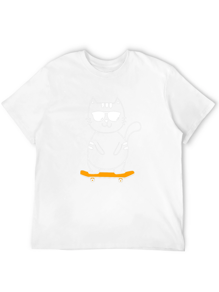 Show off your laid-back style with this unique black t-shirt featuring a cool cat riding a skateboard. The playful design showcases a white outline of a cat wearing sunglasses, adding a fun and quirky touch to your casual wardrobe. This eye-catching graphic is printed on a comfortable and durable fabric. Perfect for everyday wear, skateboarding enthusiasts, or cat lovers looking to express their personality through fashion. Whether you're hitting the streets or hanging out with friends, this t-shirt is sure to turn heads and spark conversations. Get yours today and roll into style!
