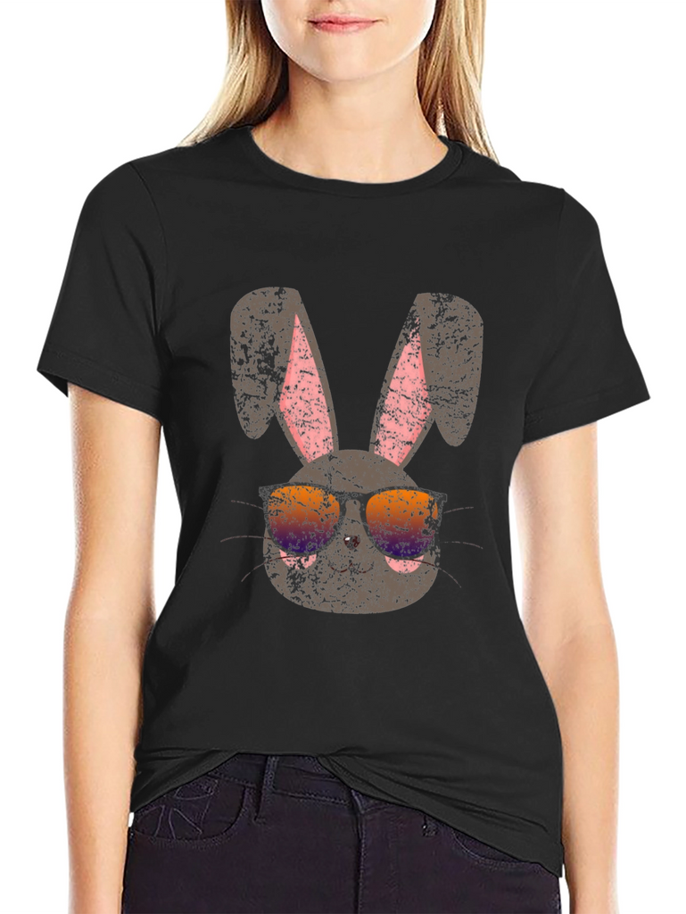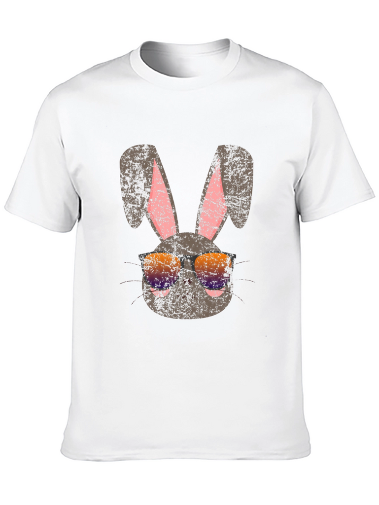 Hop into Easter with style in this unique t-shirt featuring a cool bunny graphic wearing sunglasses. The design has a distressed, vintage feel that adds character to the look. The bunny's ears are a soft pink, contrasting with the darker tones of the rest of the graphic. Made from comfortable fabric, this tee is perfect for Easter celebrations, casual outings, or just expressing your fun personality. Stand out from the crowd this Easter with this eye-catching and stylish bunny tee. It is an ideal gift idea, perfect for parties and making lasting memories.