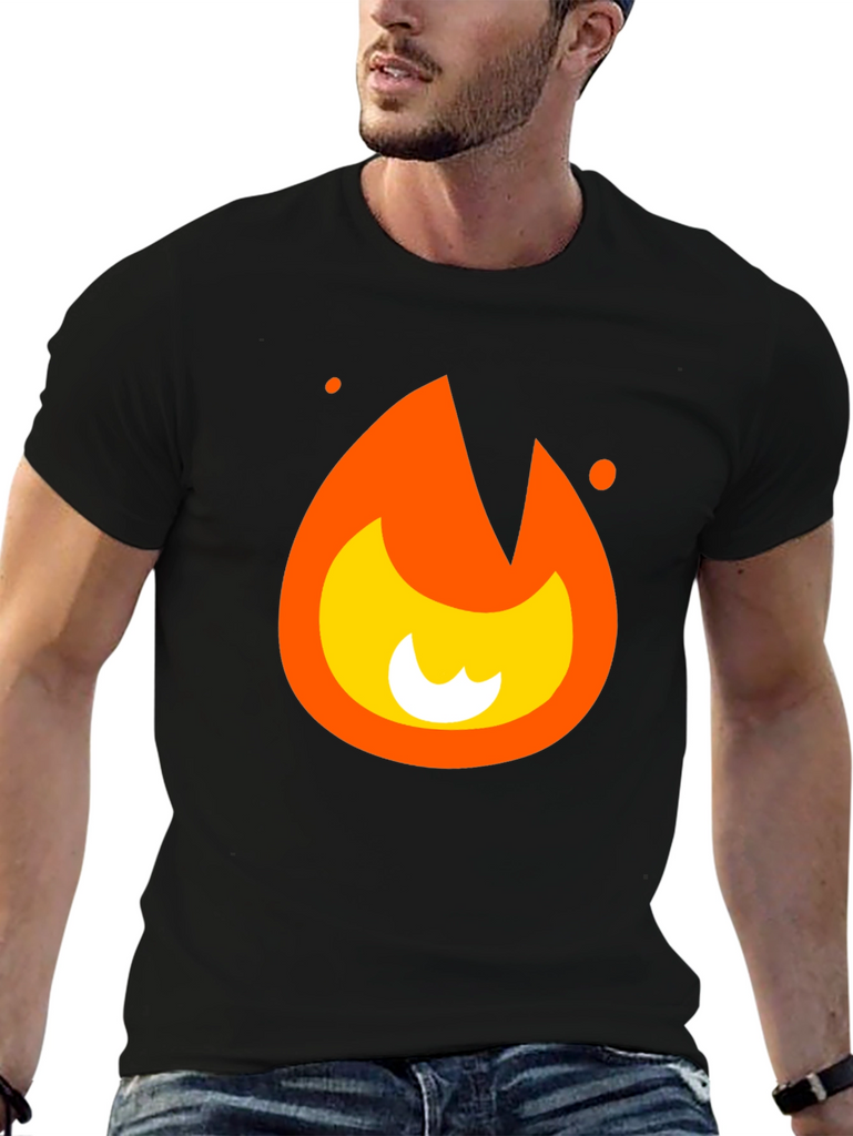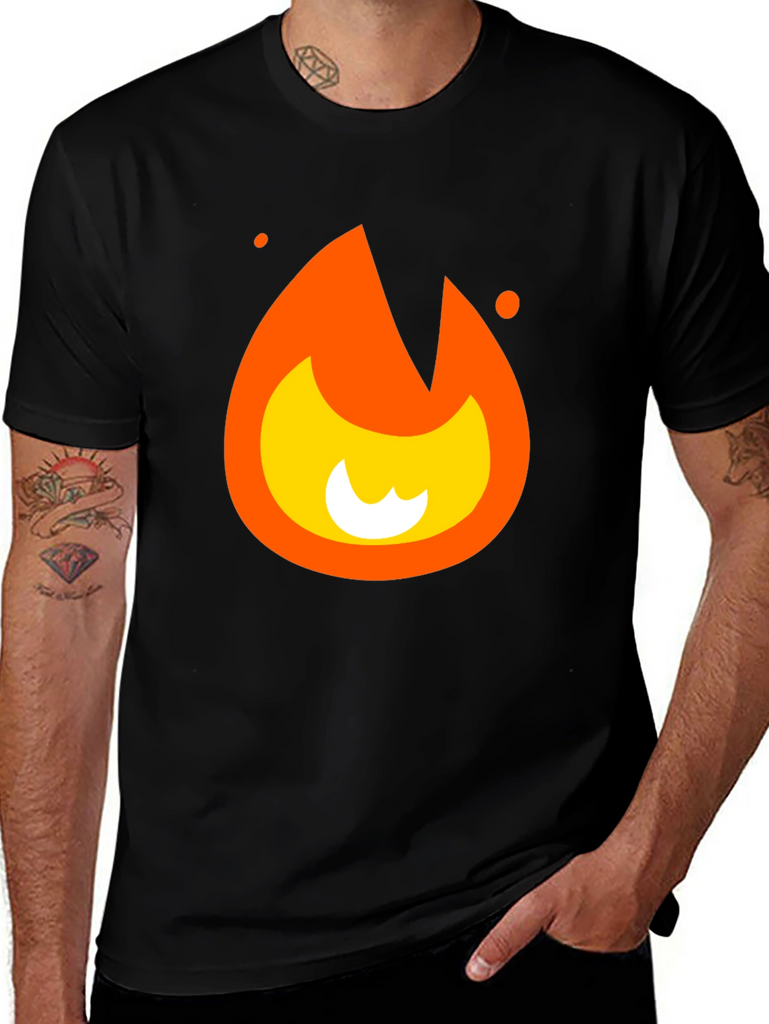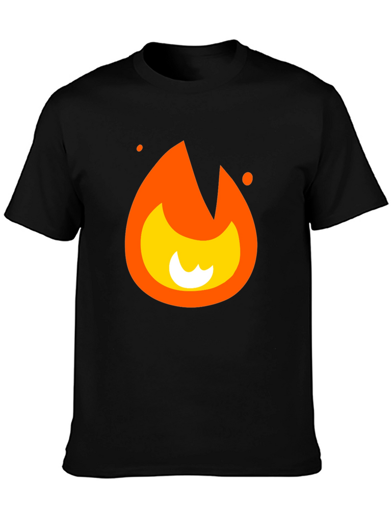 Ignite your style with this eye-catching black t-shirt. Made from a soft, comfortable fabric, this tee features a bold and bright graphic of a stylized fire emblem. The vibrant orange and yellow hues pop against the black backdrop, ensuring you'll stand out in any crowd. Perfect for casual wear, concerts, or expressing your fiery personality. Show off your unique sense of style with this must-have t-shirt! This tee will add a splash of color to your outfit. Grab yours today and light up your wardrobe!