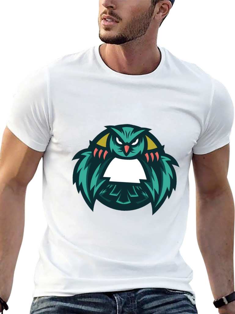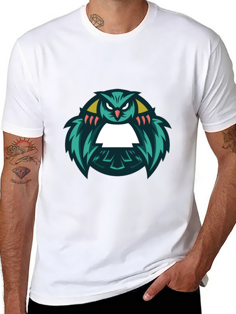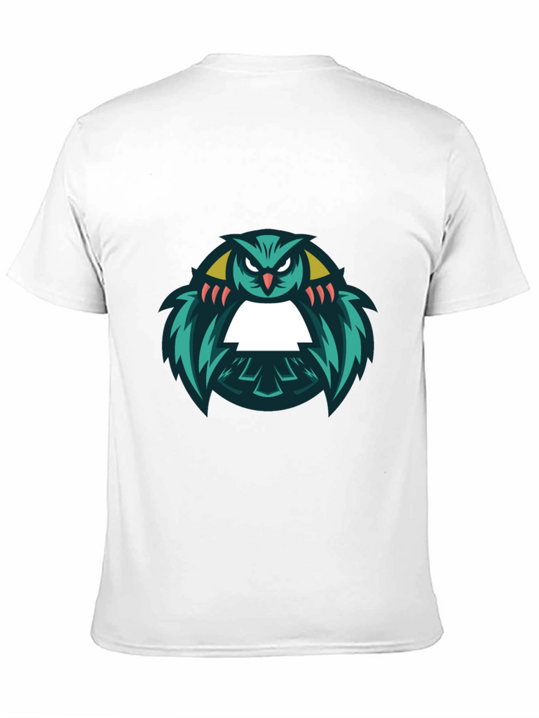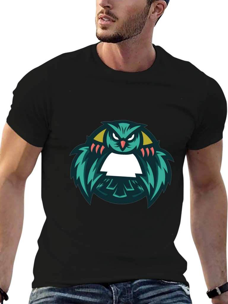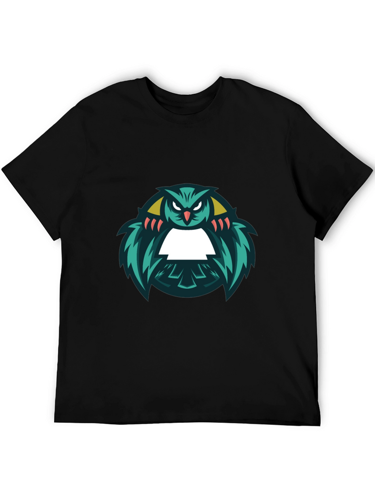 Show off your unique style with this striking black t-shirt. This tee features a bold, stylized owl graphic in shades of green, white, and red. The eye-catching design is perfect for casual wear, making a statement wherever you go. Made from a comfortable, breathable fabric, this shirt is ideal for everyday use. Whether you're hanging out with friends, running errands, or just relaxing at home, this cool owl graphic tee is sure to become a wardrobe staple. Get yours today and unleash your inner bird!