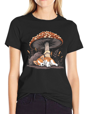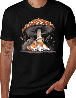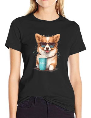 Show your love for Corgis with this fun and playful graphic tee. This black t-shirt features a vibrant, cartoon-style illustration of six adorable Corgis. The design is eye-catching and sure to bring a smile to anyone's face. Made from comfortable material, this tee is perfect for casual wear, dog park visits, or just lounging around at home. Get yours today and join the Corgi crew!