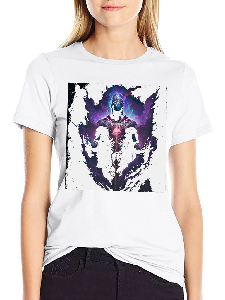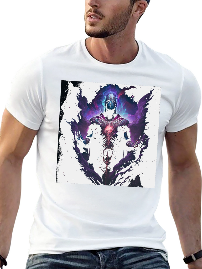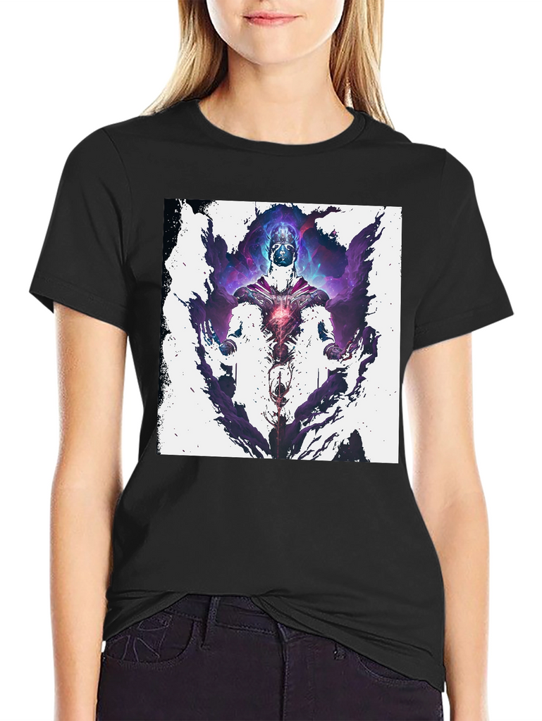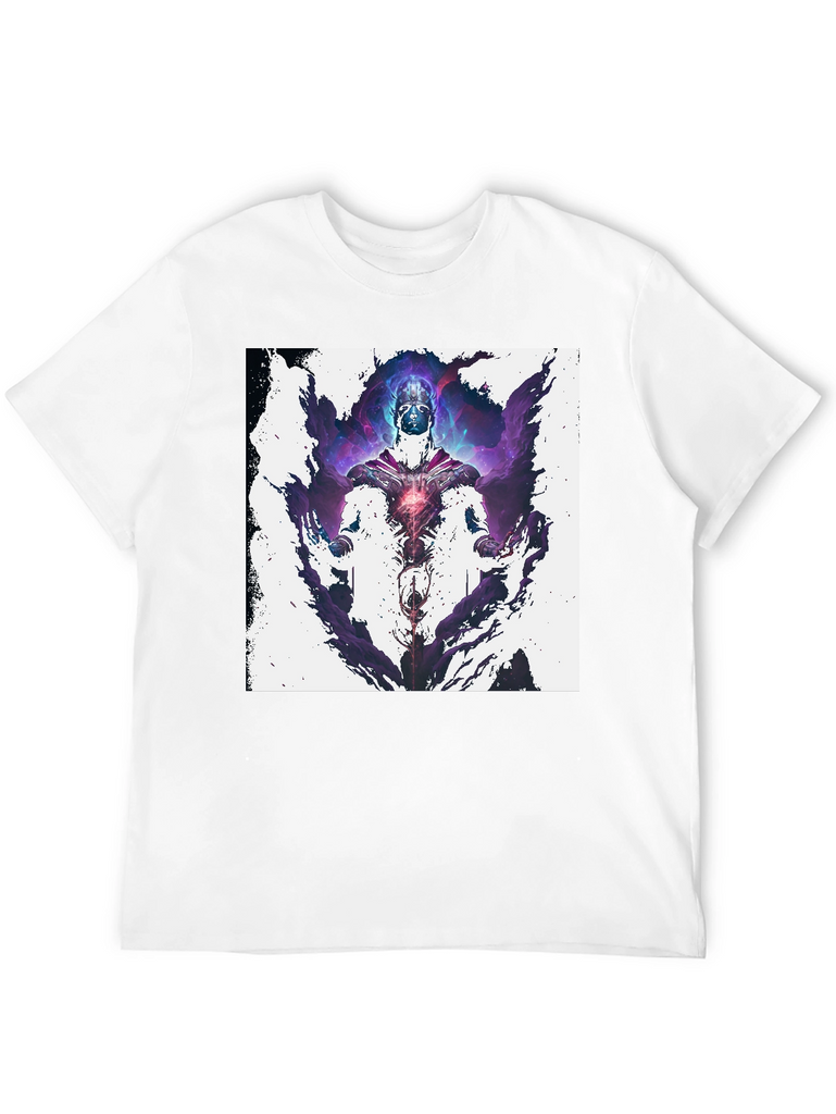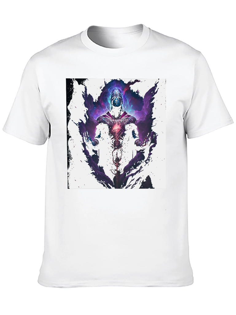 Unleash your inner mystic with this unique black t-shirt, featuring a captivating graphic of a cosmic entity. The vibrant print showcases a humanoid figure surrounded by swirling nebulous energy in shades of purple and red. Made from a comfortable cotton blend, this tee offers both style and comfort. The crisp, high-quality print is sure to turn heads. Ideal for casual wear, concerts, or expressing your unique style, this t-shirt is a must-have addition to your wardrobe. Pair it with jeans or shorts for a cool, effortless look.