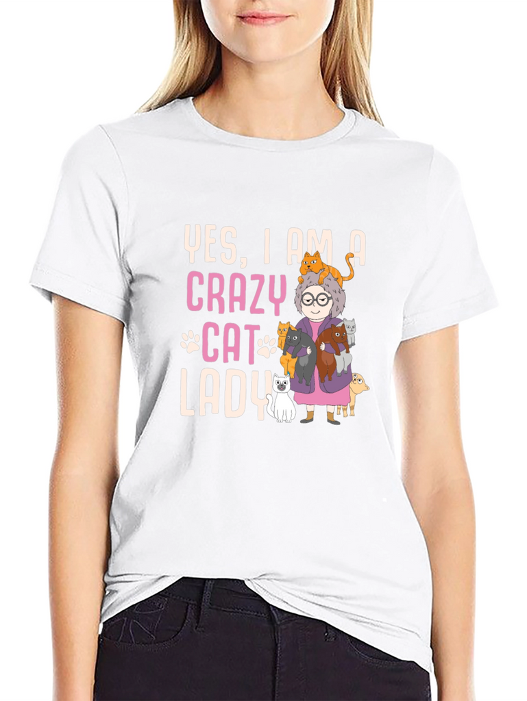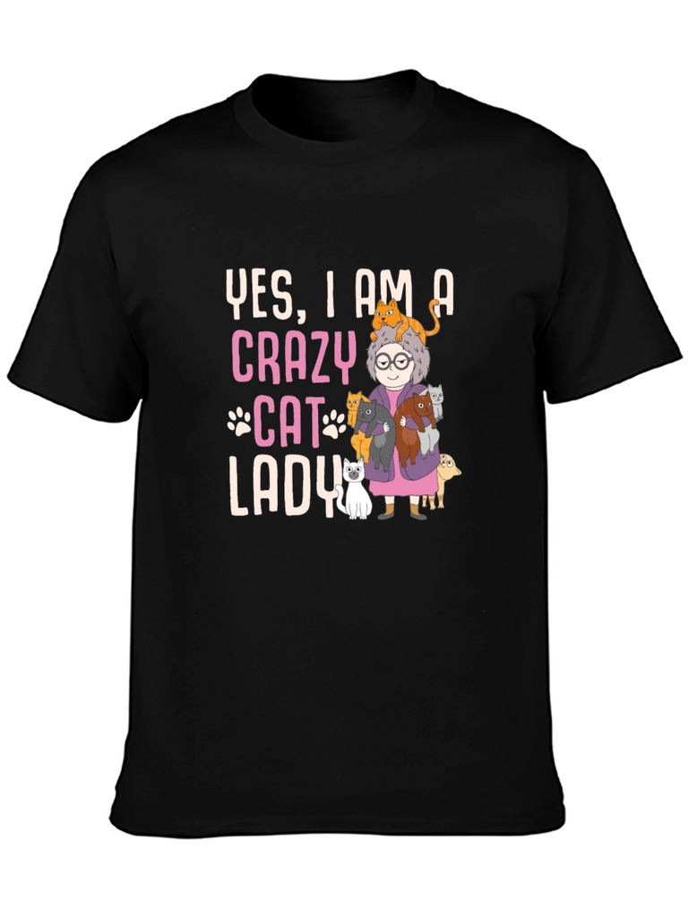 Show off your love for feline friends with this fun "Yes, I Am A Crazy Cat Lady" T-shirt. Made from a soft, breathable black fabric, this shirt features a humorous graphic of a woman surrounded by her many cats. The design incorporates pink text and paw prints for a playful touch. This tee is perfect for casual wear, cat-themed events, or as a gift for the ultimate cat lover in your life. Comfortable and stylish, it's a purr-fect addition to any wardrobe. Available in a range of sizes.
