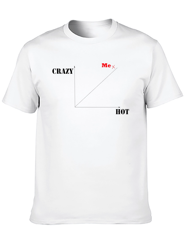 This classic black t-shirt features a bold, playful design. The words "CRAZY" and "HOT" are printed on the front, flanking a small "Me" graphic in red. The shirt is made from a soft, comfortable material, likely cotton or a cotton blend. Its short sleeves and crew neck make it ideal for everyday wear. Perfect for expressing a fun, carefree attitude, this tee is a stylish choice for casual outings. Pair it with jeans or shorts for an effortlessly cool look. Add a touch of personality to your wardrobe with this unique and eye-catching t-shirt.