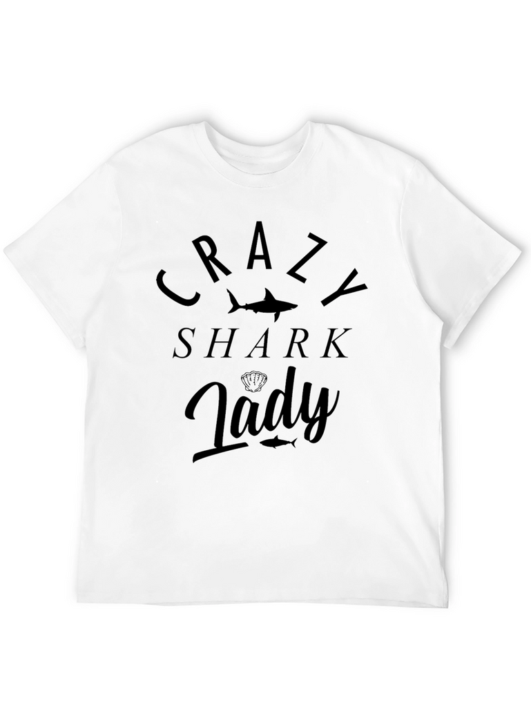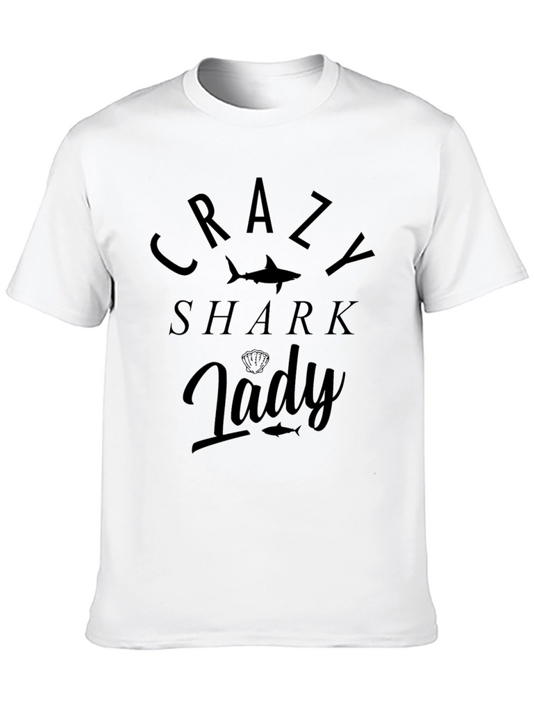 Show off your love for sharks with this fun and stylish black t-shirt. Featuring the phrase "Crazy Shark Lady" in a creative design, this tee is perfect for any shark enthusiast. The shirt appears to be made of a soft, comfortable material, ideal for everyday wear. The design incorporates a shark graphic and other subtle nautical elements, adding to its unique charm. Wear it to the beach, aquarium, or simply as a statement piece to express your passion. This t-shirt is a must-have for any proud shark lady looking to make a splash!