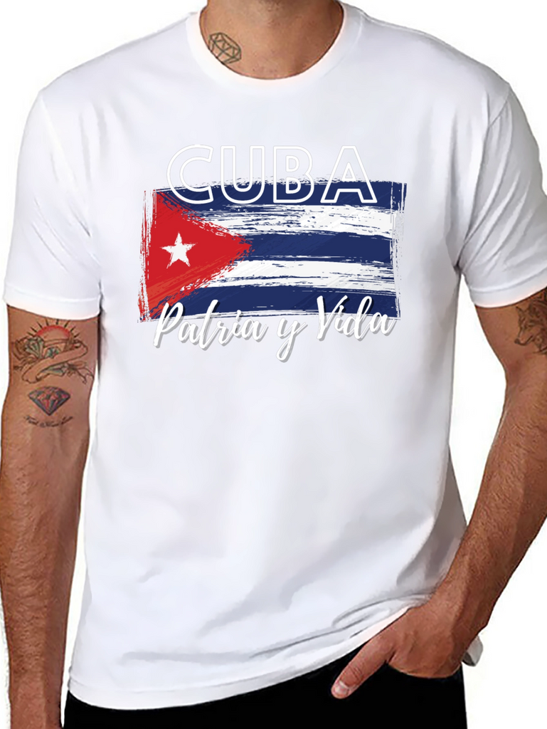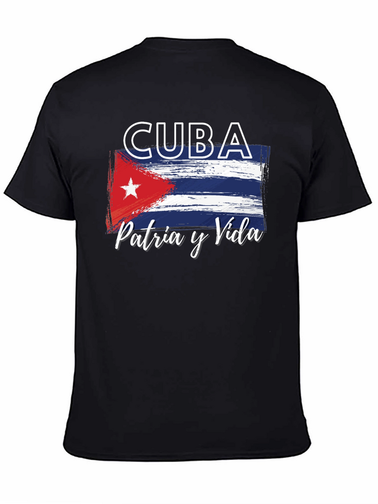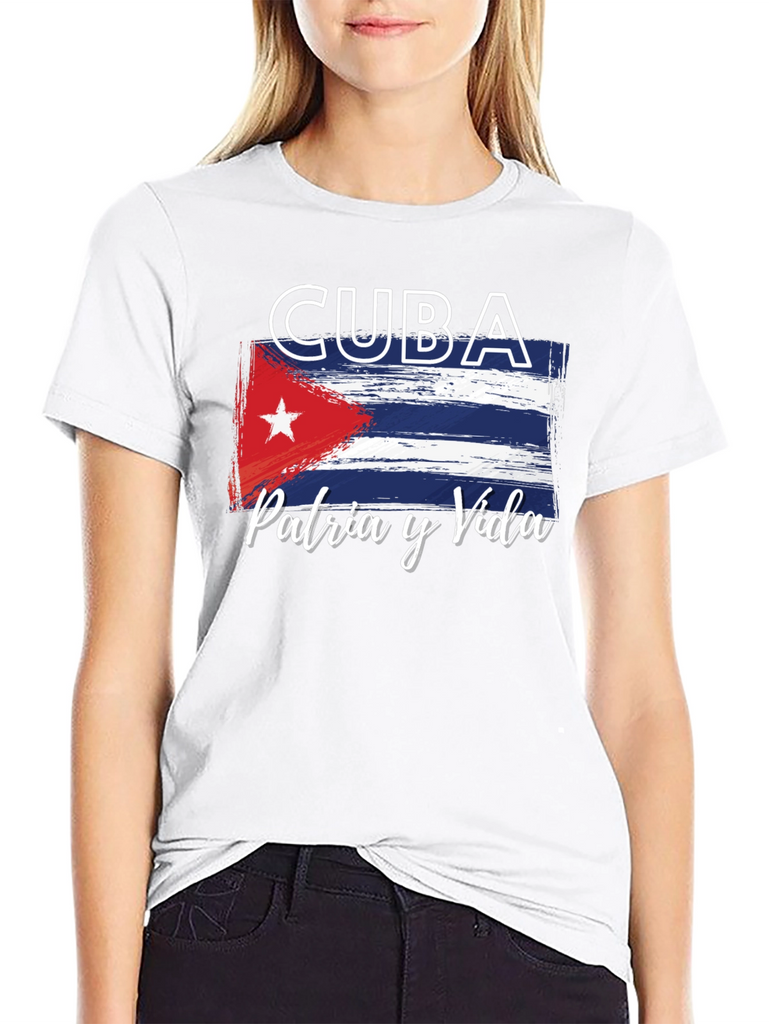 Show your support with this stylish t-shirt featuring the Cuban flag. The shirt displays Cuba's flag along with "Patria y Vida." Made from comfortable material, this garment is perfect for casual wear, rallies, or showcasing your connection to Cuban culture. The design is bold and eye-catching. Wear it with pride and express your heritage. A great conversation starter and a meaningful addition to any wardrobe.