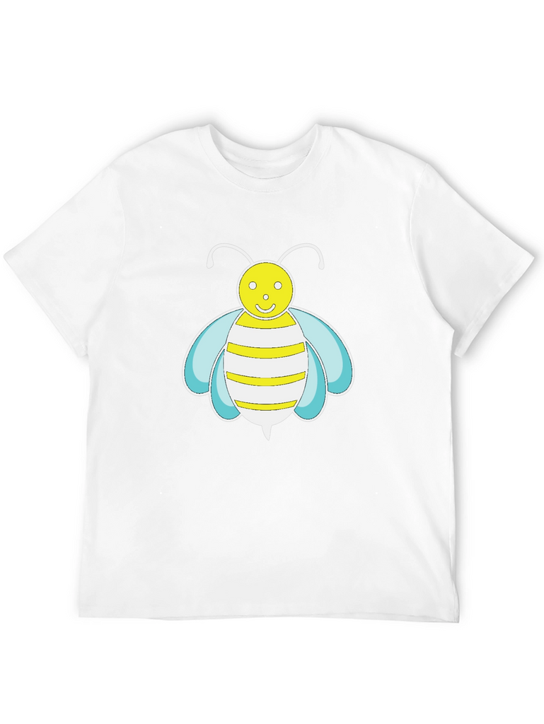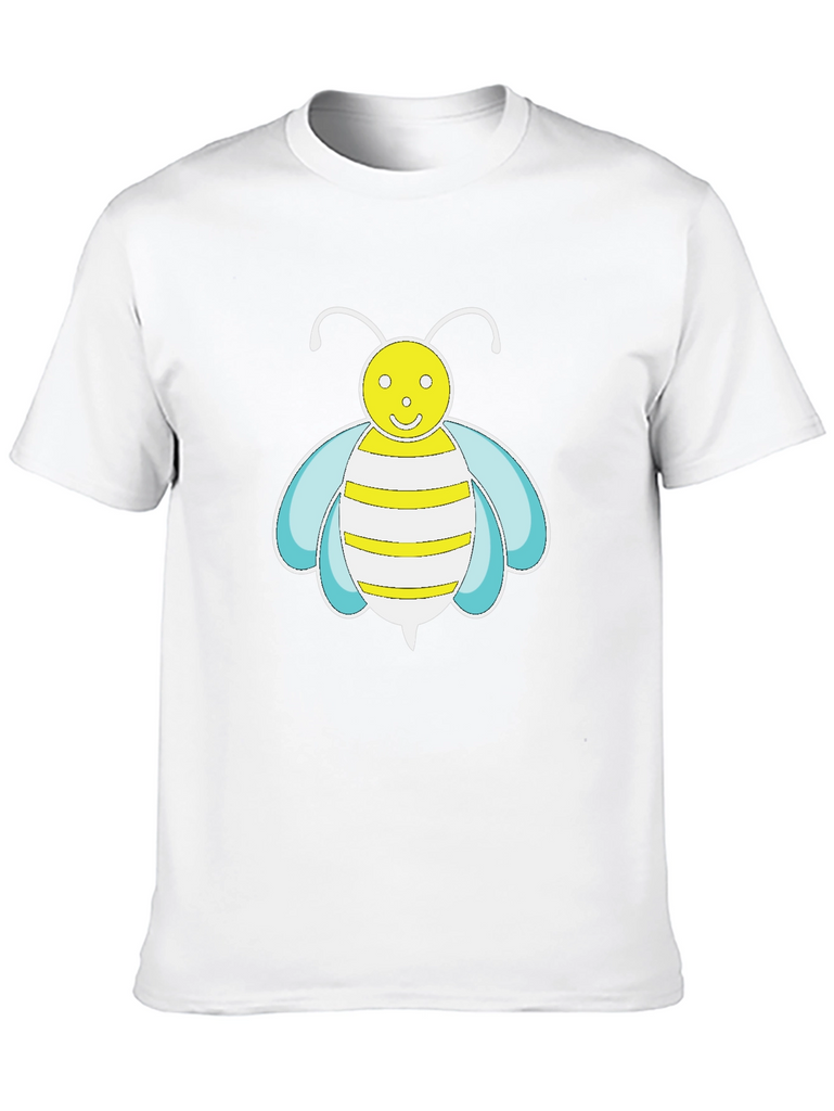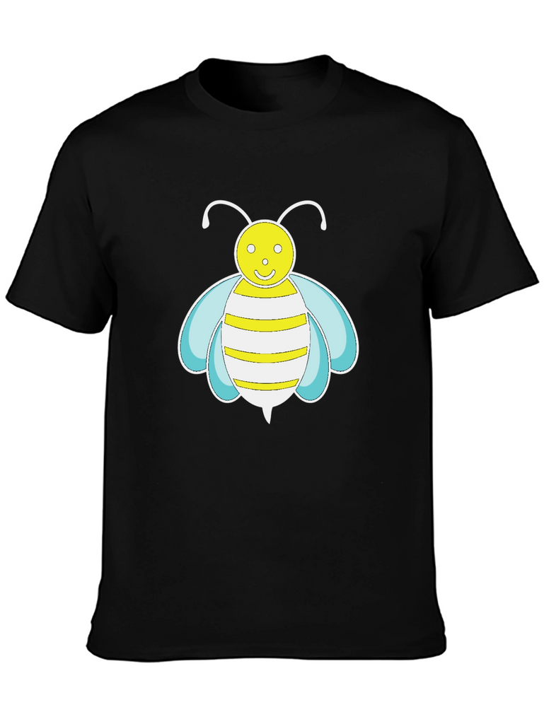 This classic black t-shirt features a charming cartoon bee graphic on the front. The bee design is bright and cheerful, with yellow and white stripes, a smiling face, and light blue wings outlined in white. Made from what appears to be a comfortable and durable cotton blend, this shirt is perfect for casual wear. It's a fun and playful addition to any wardrobe, ideal for expressing a lighthearted personality or simply enjoying a comfortable and stylish look. Great for everyday outings, casual gatherings, or just relaxing at home.