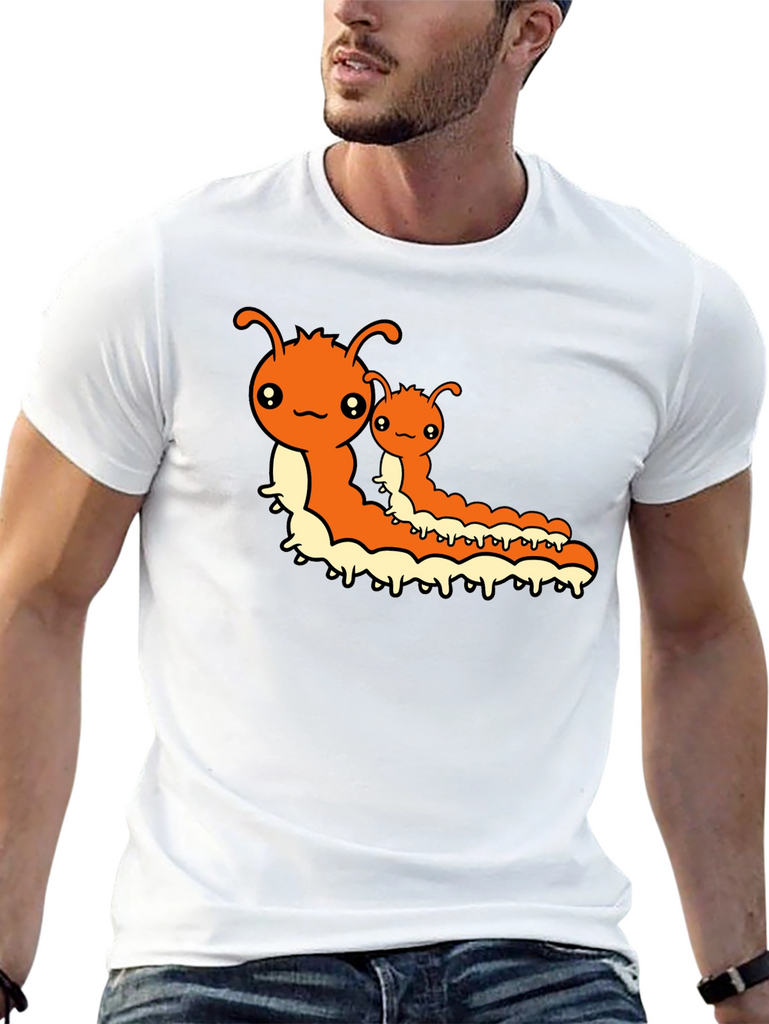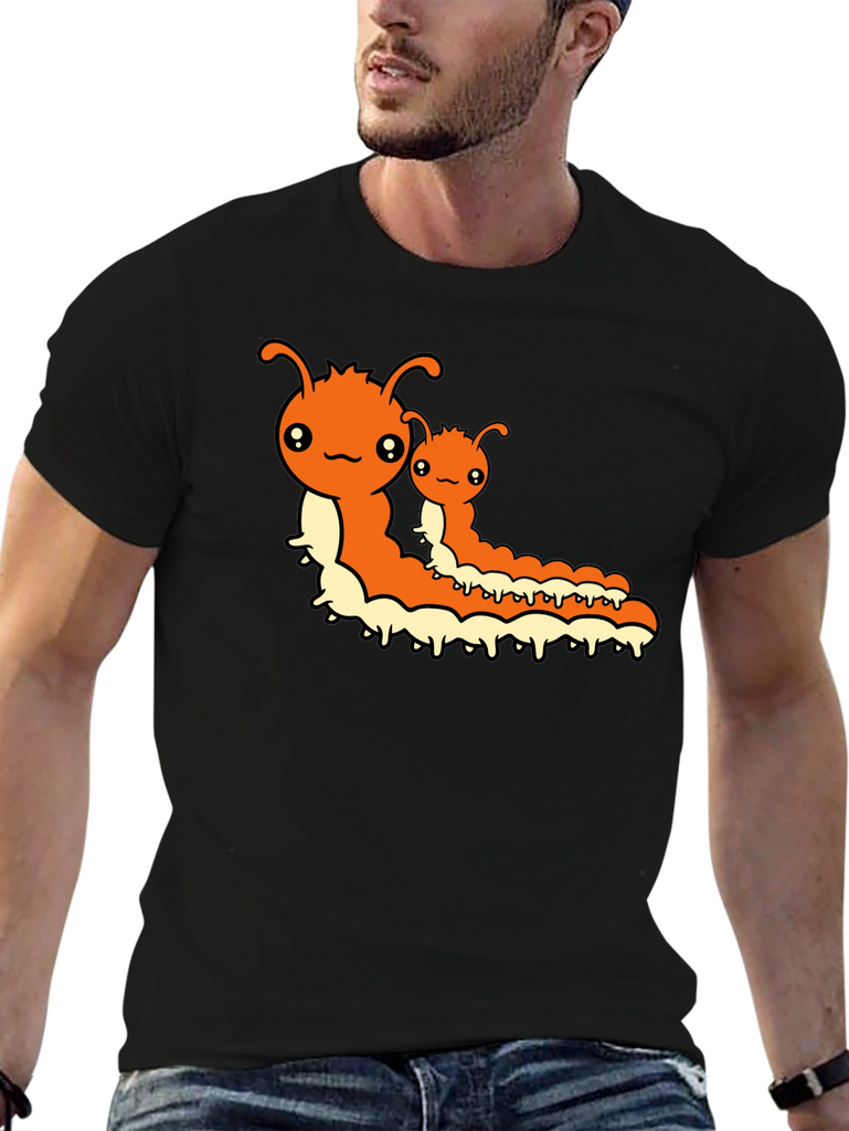 Show off your love for unique and adorable designs with this black t-shirt featuring a vibrant cartoon illustration of two orange caterpillars! The playful graphic adds a whimsical touch to your everyday style. Crafted from soft, comfortable fabric, this t-shirt is perfect for casual wear, whether you're hanging out with friends, running errands, or just relaxing at home. The detailed artwork and high-quality print ensure that the design remains bold and eye-catching. This t-shirt is a great way to express your fun-loving personality and adds a touch of charm to any outfit. Available in various sizes to fit every body type.