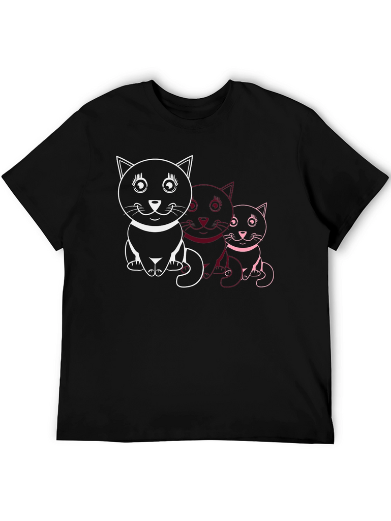 Show off your feline affinity with this adorable black t-shirt! Featuring a charming graphic of three cartoon cats, each with distinct colors and cute details. The classic crew neck and soft fabric ensure a comfortable fit. Perfect for casual wear, cat lovers, or anyone looking to add a touch of playful style to their wardrobe. Dress it up with a skirt and heels or keep it casual with jeans and sneakers. A purr-fect addition to any outfit!