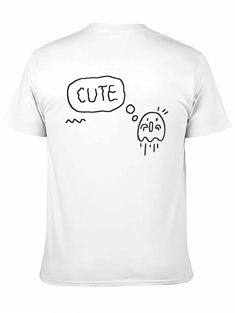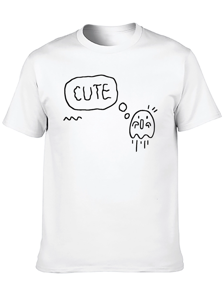 Embrace whimsical style with this black t-shirt featuring a unique 'cute ghost' graphic. The design showcases a hand-drawn style ghost with the word 'cute' in a thought bubble. Made from comfortable, breathable fabric, this tee is perfect for casual wear. Whether you're heading out for a relaxed day with friends or looking to add a touch of playful charm to your everyday wardrobe, this shirt delivers both style and comfort. Pair it with your favorite jeans or shorts for an effortless look. Show off your fun-loving personality with this eye-catching tee!