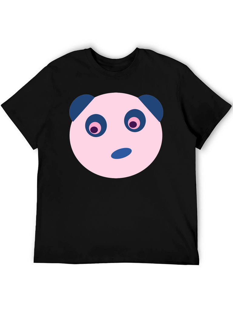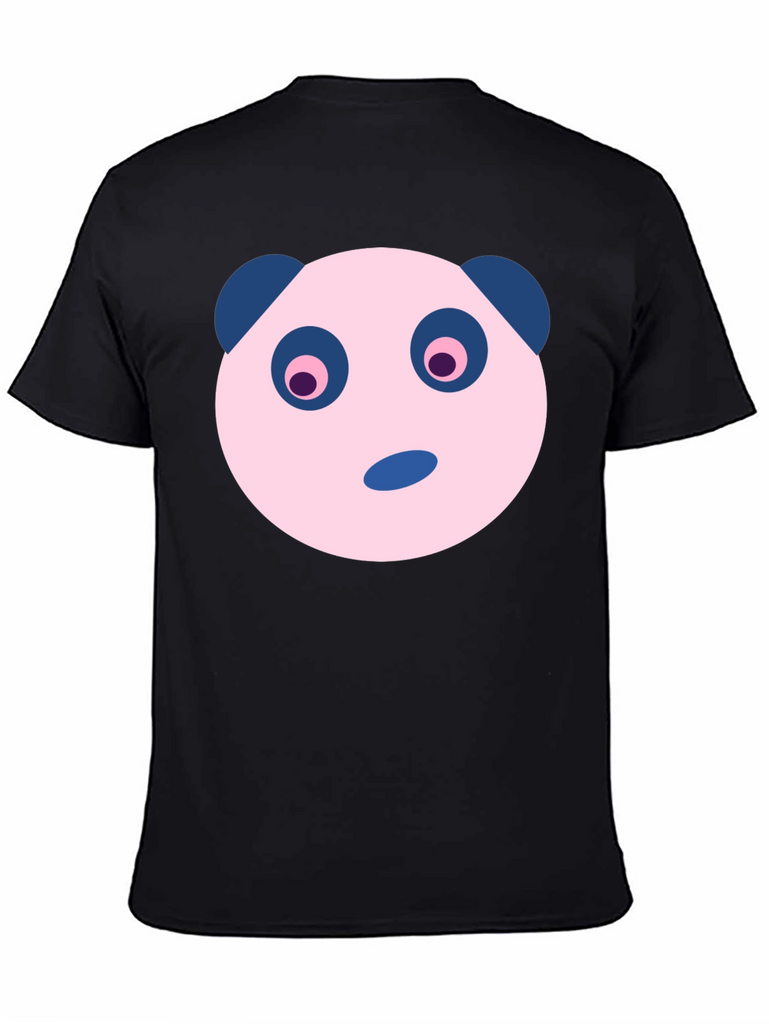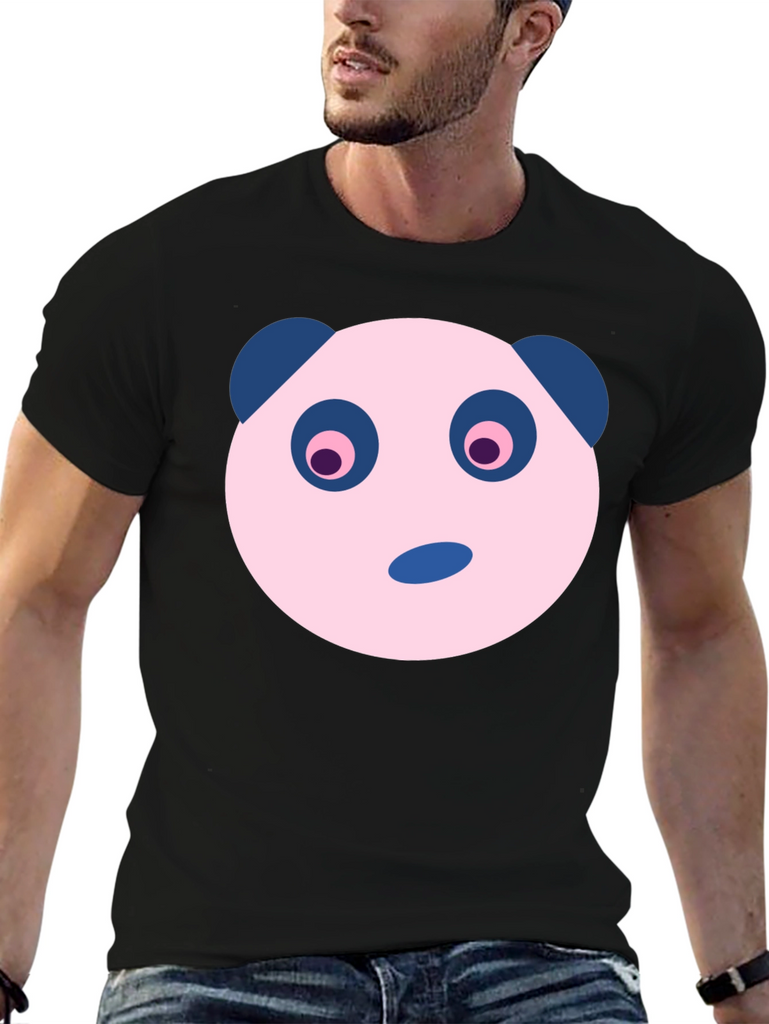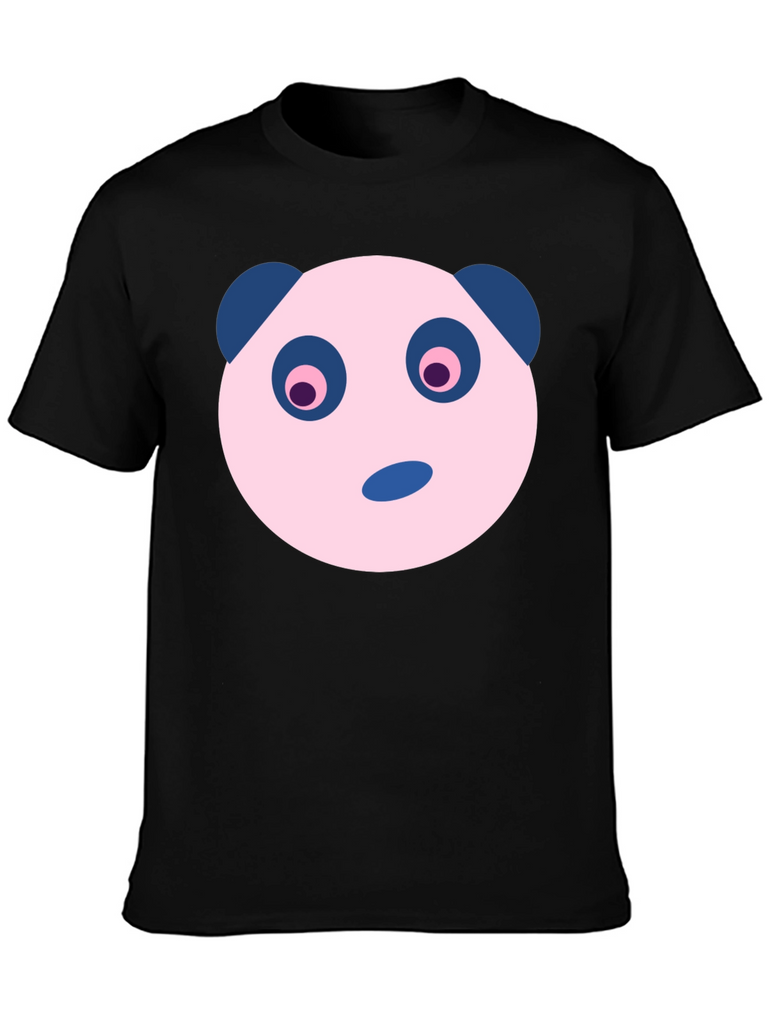 Show off your playful side with this stylish black t-shirt featuring a cartoon panda face. The panda design has a pink base, blue ears and nose, and purple inner-eye circles. Made from comfortable, breathable fabric, this tee is perfect for everyday wear. Whether you're lounging at home, running errands, or meeting up with friends, this versatile t-shirt will keep you looking and feeling great. The unique panda graphic adds a touch of fun to any outfit, making it a must-have addition to your casual wardrobe. Stand out from the crowd with this eye-catching and comfortable tee!