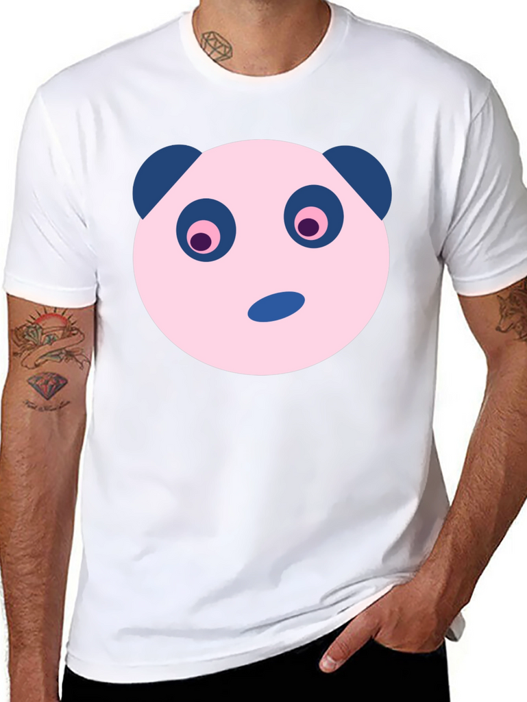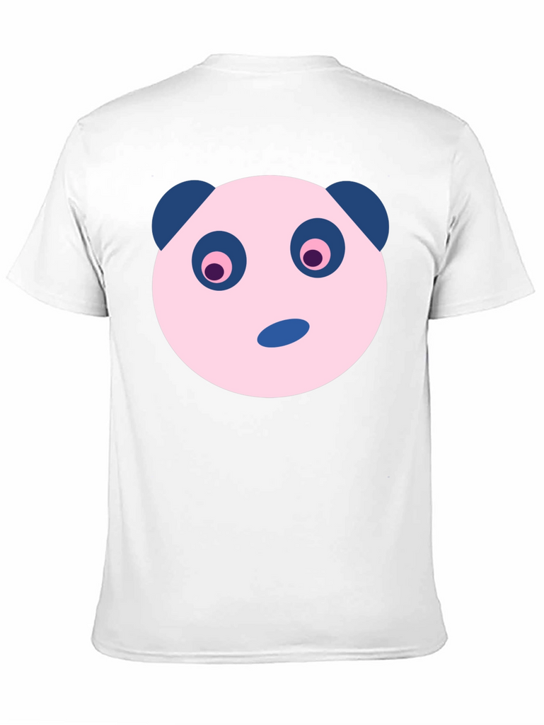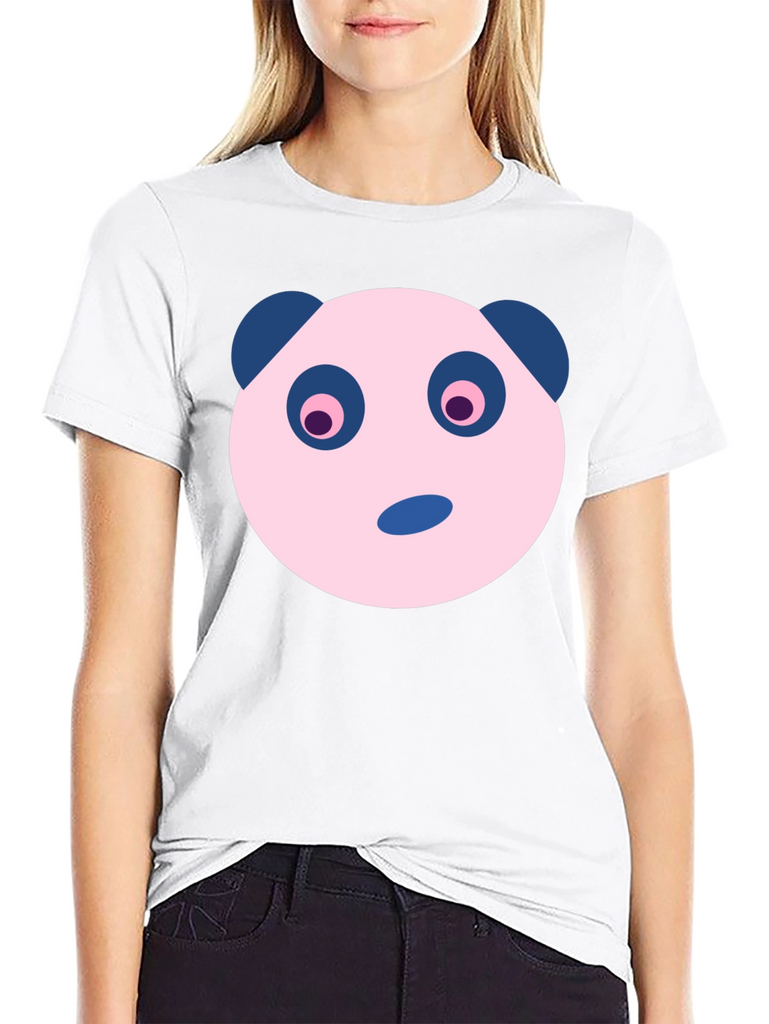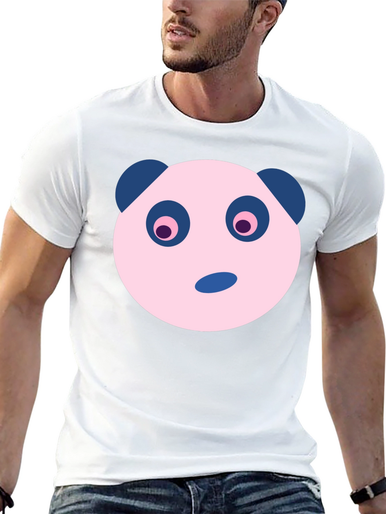Show off your playful side with this stylish black t-shirt featuring a cartoon panda face. The panda design has a pink base, blue ears and nose, and purple inner-eye circles. Made from comfortable, breathable fabric, this tee is perfect for everyday wear. Whether you're lounging at home, running errands, or meeting up with friends, this versatile t-shirt will keep you looking and feeling great. The unique panda graphic adds a touch of fun to any outfit, making it a must-have addition to your casual wardrobe. Stand out from the crowd with this eye-catching and comfortable tee!