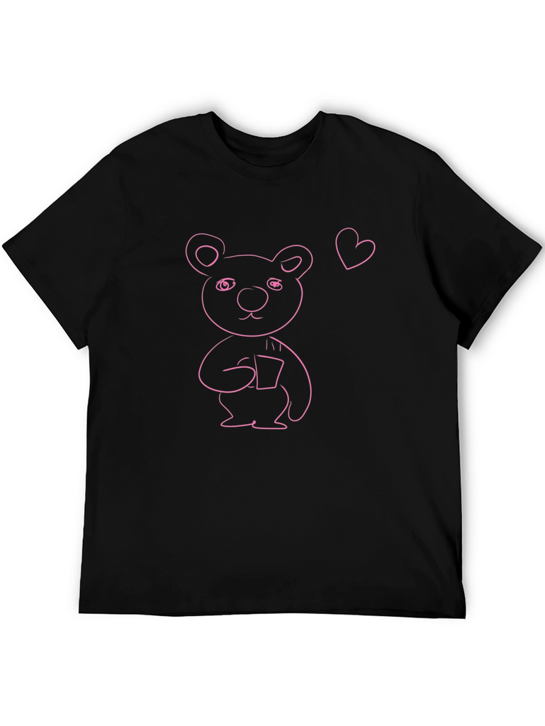 Show off your playful side with this stylish black t-shirt featuring a cute pink bear graphic. The whimsical design includes a bear holding a glass and a heart floating nearby, adding a touch of charm to your everyday wear. Made from a comfortable, soft fabric, this t-shirt is perfect for casual outings, lounging at home, or as a fun statement piece. The unique design is sure to spark conversations and bring smiles wherever you go. Great gift for birthdays, holidays, or any occasion to celebrate someone special.