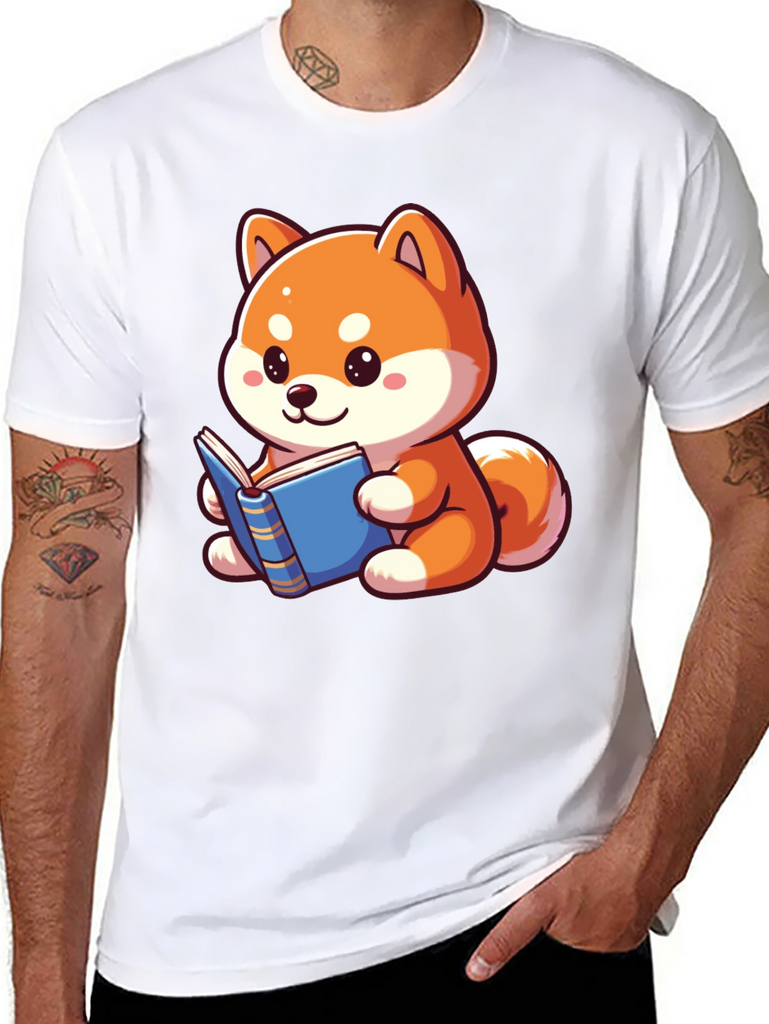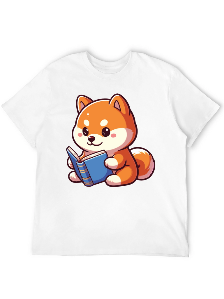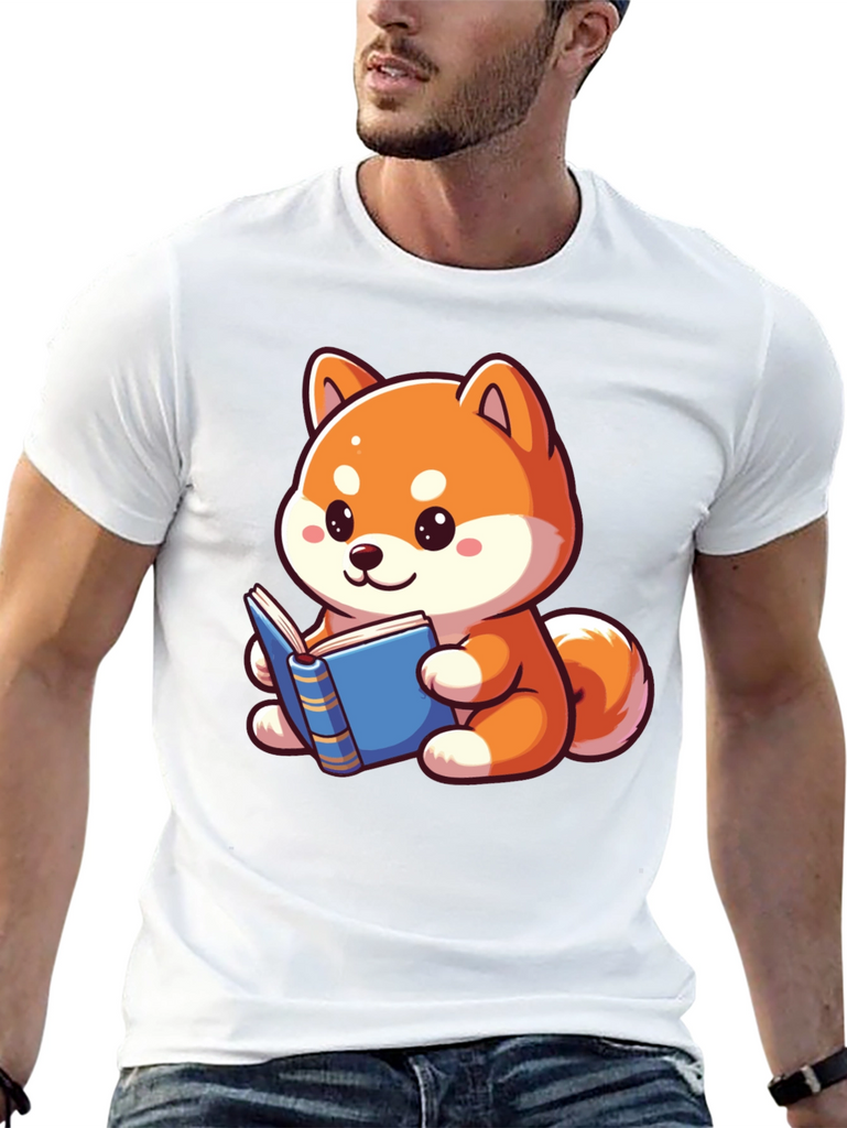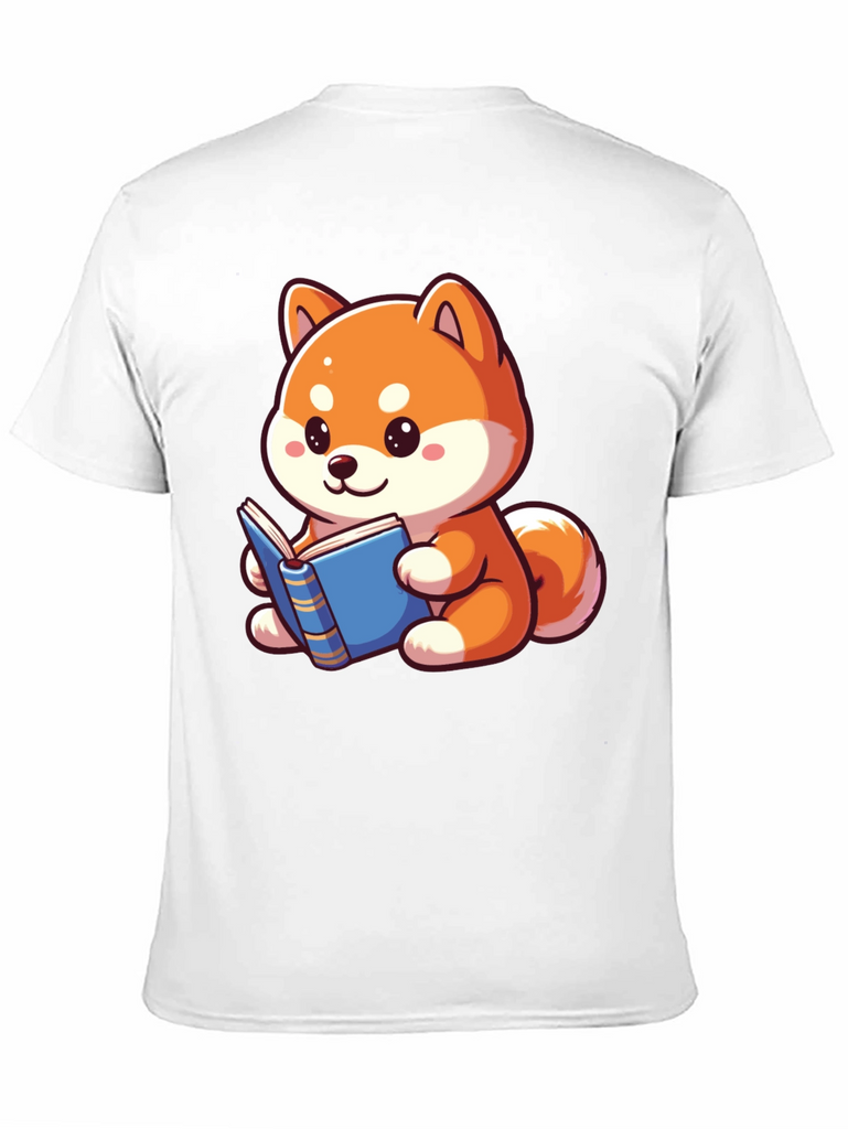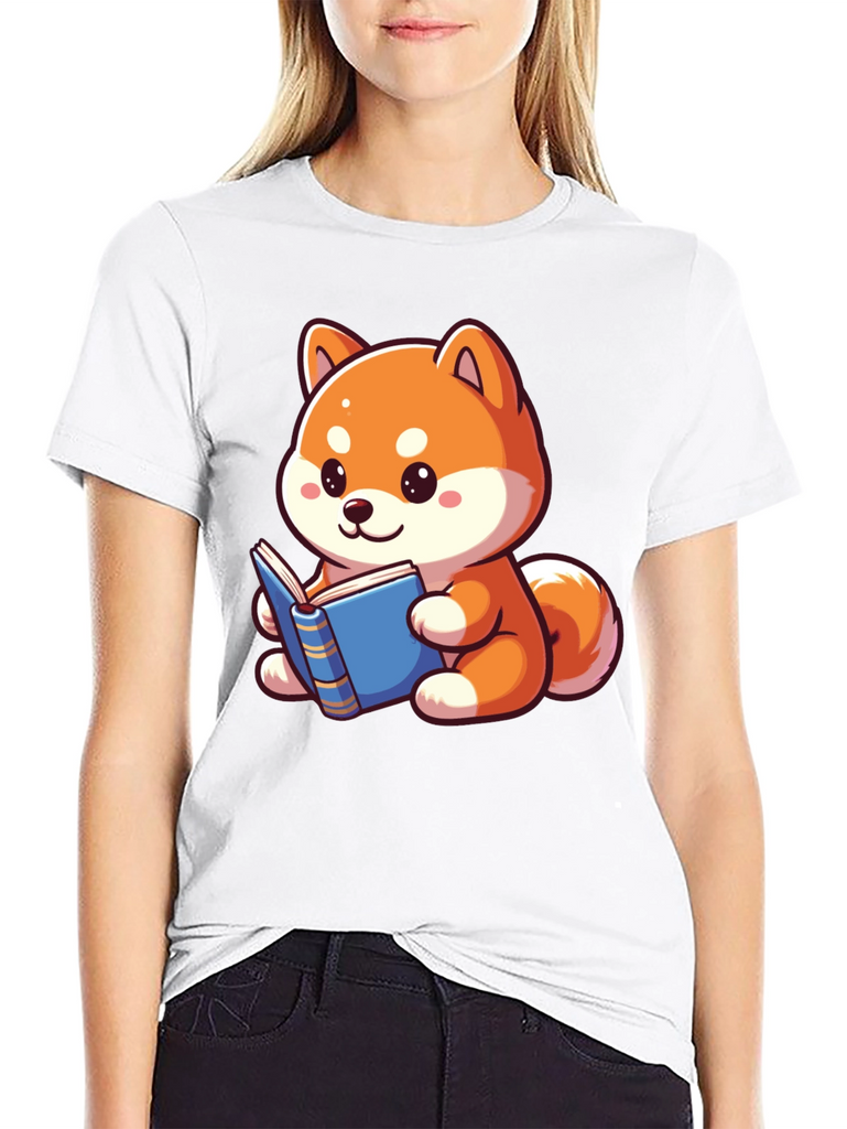 This black t-shirt features a charming cartoon illustration of a Shiba Inu dog engrossed in reading a blue book. The design is vibrant and eye-catching, perfect for dog lovers and bookworms alike. Made from comfortable, breathable fabric, this shirt is ideal for casual wear. The print is high-quality, ensuring it remains vibrant even after multiple washes. Wear it to the library, the park, or simply while relaxing at home. This t-shirt is sure to bring a smile to everyone's face and makes a wonderful gift for friends and family who appreciate cute and quirky designs. A must-have addition to any wardrobe!