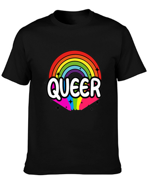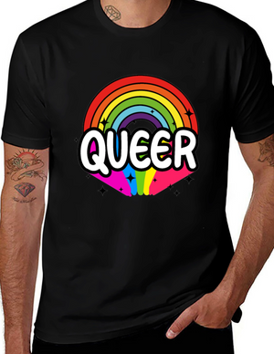 Show your true colors with this bold and expressive black t-shirt. Featuring a unique graphic of four skeletons, one vibrantly showcasing the colors of the rainbow while the others stand in stark white, it sends a powerful message of self-acceptance and pride. The words "Dare To Be Yourself" are emblazoned in rainbow colors, reinforcing the theme. Crafted from a comfortable fabric, this tee is perfect for casual wear, pride events, or making a statement wherever you go. Stand out from the crowd and celebrate individuality with this eye-catching and meaningful t-shirt.
