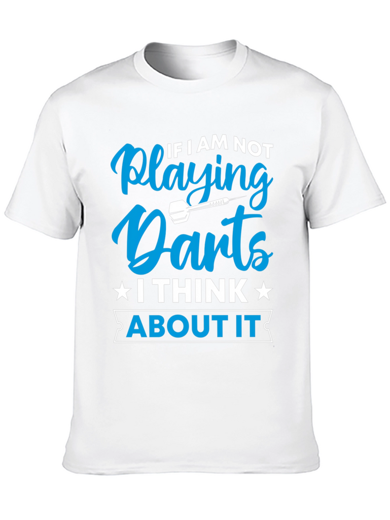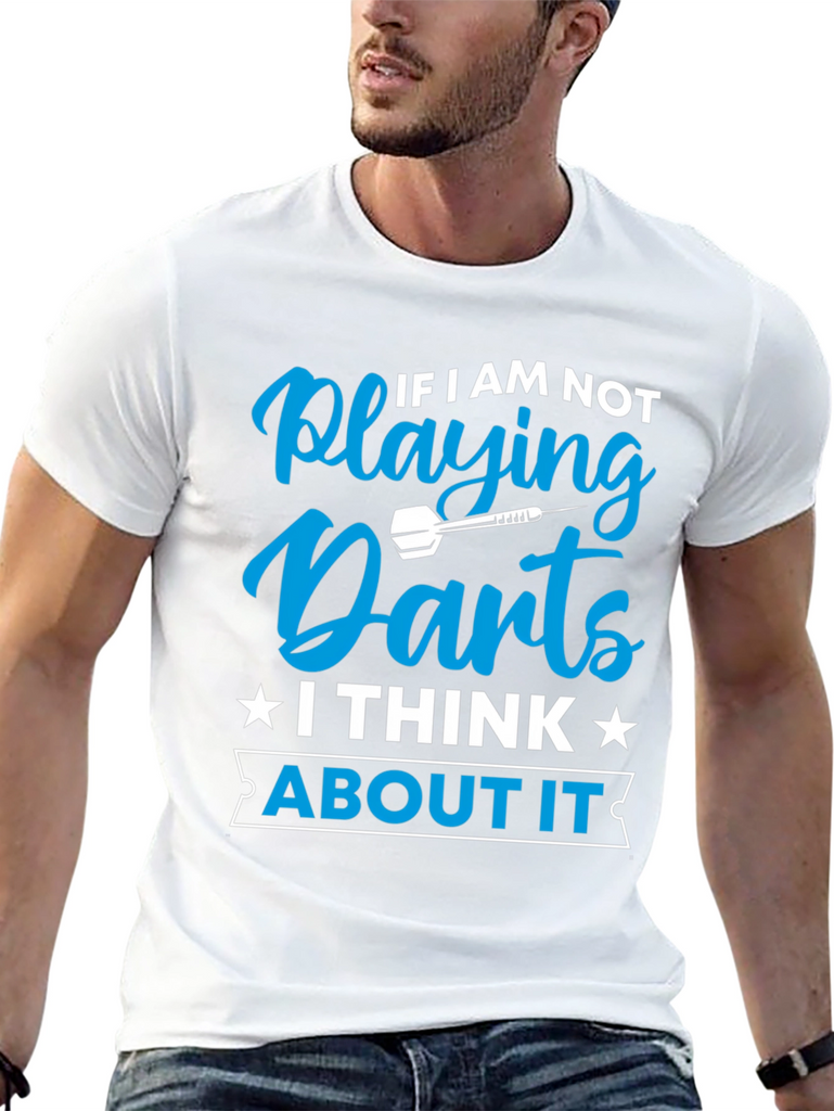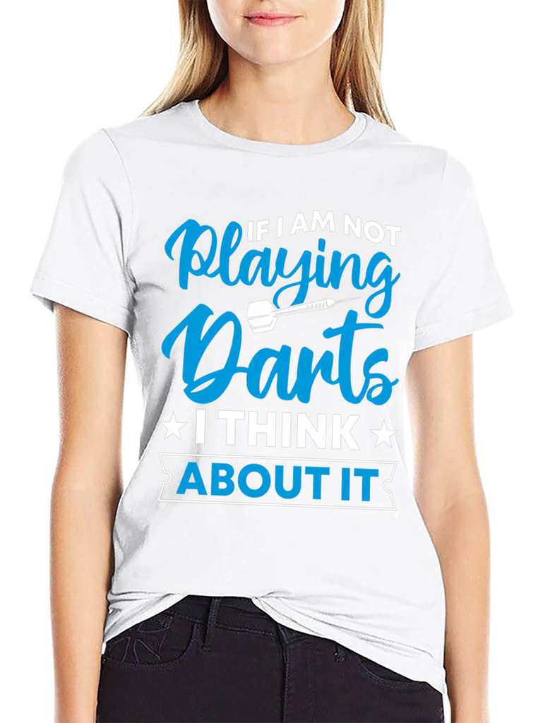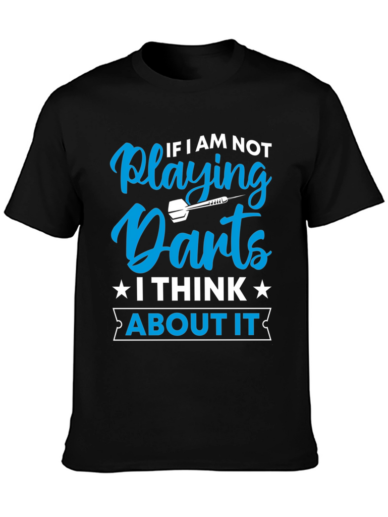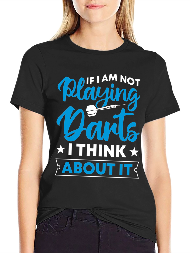 Showcase your love for darts with this stylish and comfortable t-shirt. The design features the phrase "If I am not Playing Darts I Think About It" in a cool, eye-catching font. A darts image is incorporated within the design, enhancing the sporty and fun vibe of the shirt. The stars add a touch of playful elegance. Made from what appears to be a soft, breathable fabric, this tee is perfect for casual wear, game nights, or as a gift for the darts enthusiast in your life. Express your passion for the game with this unique and expressive t-shirt!