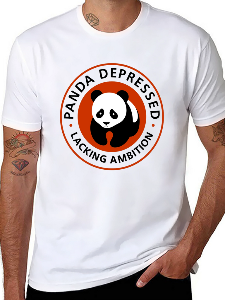 Show off your unique sense of humor with this eye-catching t-shirt. Featuring a panda graphic encircled by the words "Panda Depressed Lacking Ambition", this tee offers a playful twist. The design is printed on a classic black t-shirt, providing a versatile and casual look. Made from comfortable fabric, it's perfect for everyday wear or a fun night out. Let this expressive t-shirt speak for you, making it an instant conversation starter.
