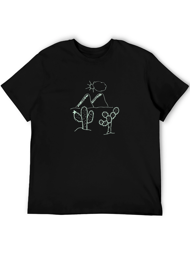 Embrace the laid-back vibes with this eye-catching t-shirt. Crafted from soft, comfortable fabric, this tee features a unique graphic of desert landscape with cacti under the sun. The simple design makes it a versatile piece for everyday wear. Pair it with jeans for a casual outing or dress it up with a blazer for a cool look. Express your love for nature and standout with this cool t-shirt. Perfect for those who appreciate unique design and effortless style.