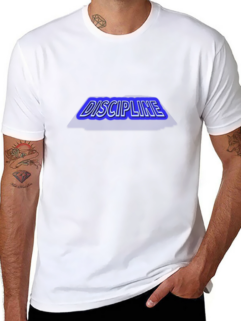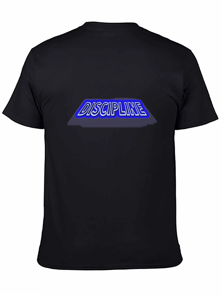 Show your commitment to discipline with this striking black cotton t-shirt. The tee features a bold, blue-outlined graphic of the word "DISCIPLINE" across the chest, making a statement without saying a word. Constructed from comfortable and breathable cotton, this shirt is perfect for workouts, casual outings, or lounging at home. The classic fit ensures all-day comfort and easy styling. Whether you're hitting the gym, running errands, or just want to display your dedication to self-improvement, this t-shirt is a perfect choice. Add this motivational piece to your wardrobe and wear your mindset proudly!