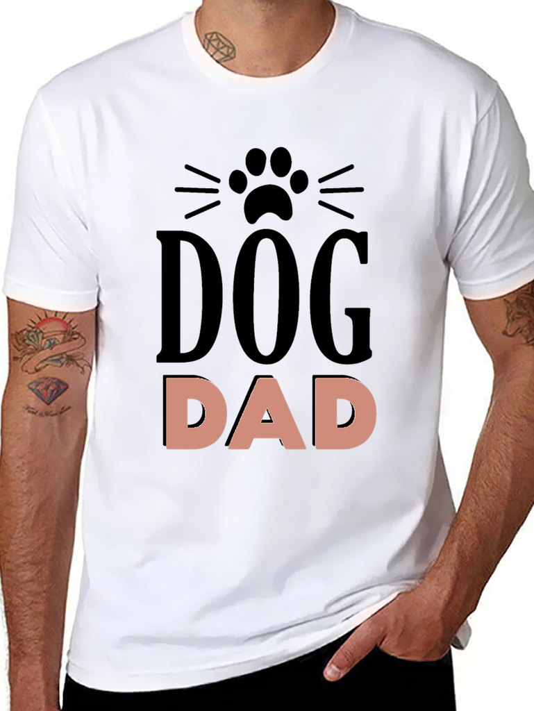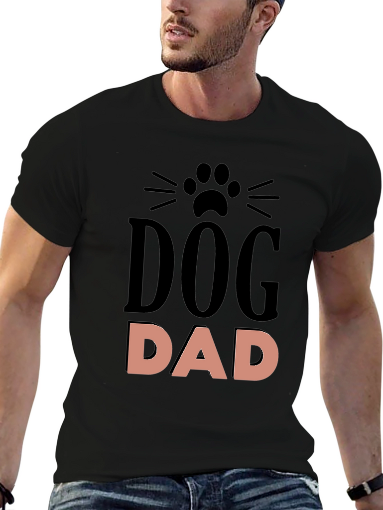 Show your love for your furry friend with this stylish black "Dog Dad" t-shirt. Made from comfortable, breathable fabric, this tee features a bold graphic design with a paw print and the text "DOG DAD". The classic fit makes it perfect for everyday wear. Wear it to the park, pet store, or just lounging around the house. This t-shirt makes a great gift for any proud dog dad. Get yours today and let everyone know you're the best dog dad around!