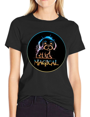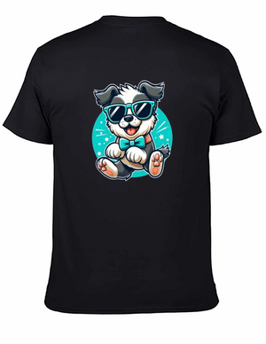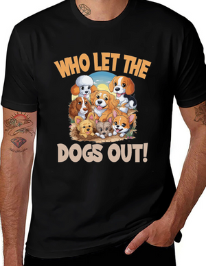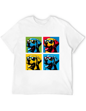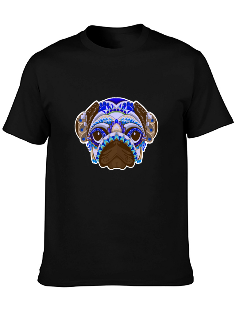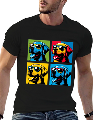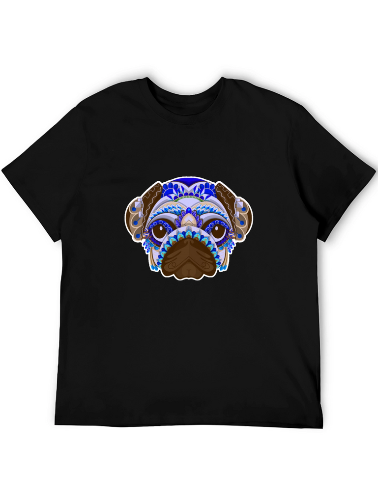 Show off your love for pups with this striking graphic tee. This t-shirt features an eye-catching image of a dog with colorful abstract patterns. The design combines shades of blue, purple, brown, and white to create a unique and vibrant look. Made from soft, breathable cotton, this shirt is perfect for everyday wear. Pair it with jeans or shorts for a casual and stylish look. Ideal for dog lovers who want to add a bit of personality to their wardrobe. Enjoy the comfortable fit and unique design of this standout t-shirt.