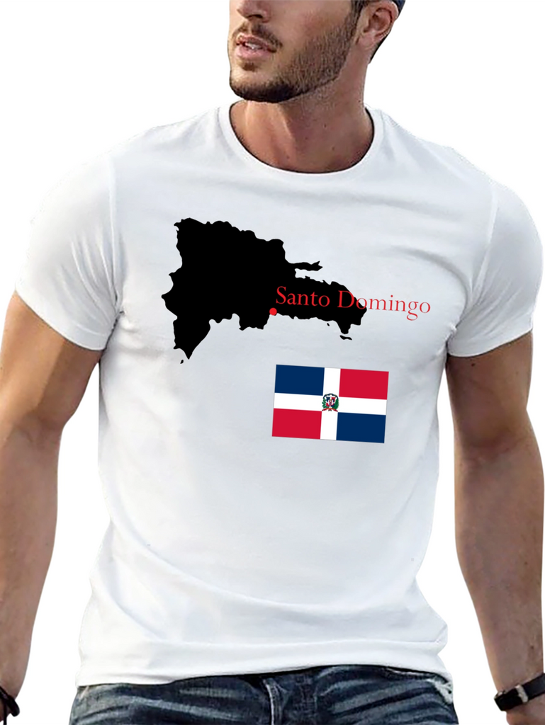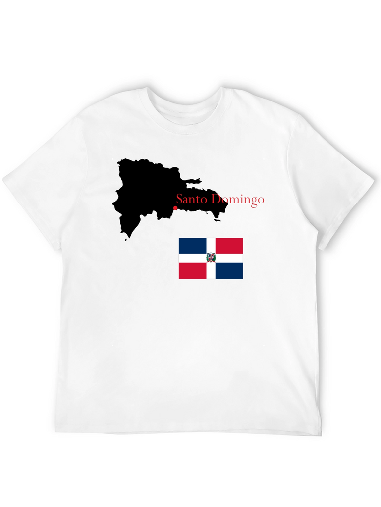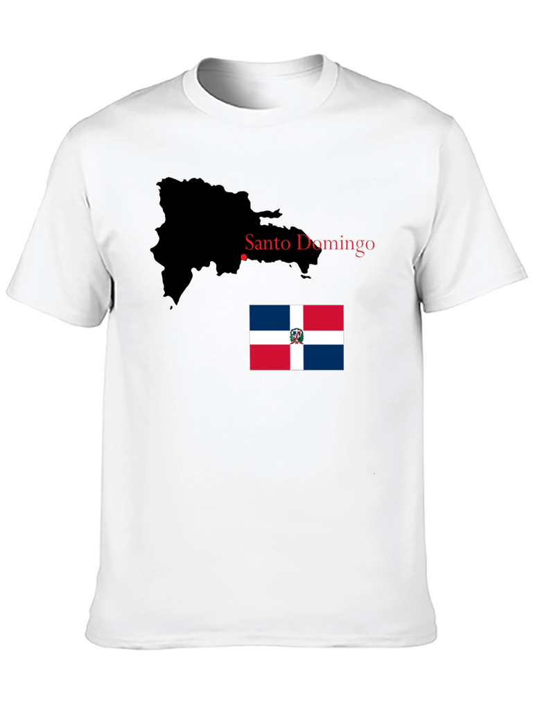 Show your Dominican Republic pride with this eye-catching black t-shirt! The design features a bold silhouette of the Dominican Republic map, clearly displaying "Santo Domingo" in elegant red lettering. Beneath the map, the vibrant Dominican Republic flag adds a pop of color and national identity. This tee is perfect for everyday wear, cultural events, or as a thoughtful gift for anyone with Dominican heritage. The classic black backdrop ensures the design truly stands out. Made from a soft, comfortable fabric, it’s ideal for casual outings, showcasing your love for the Dominican Republic in style.