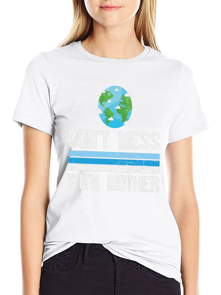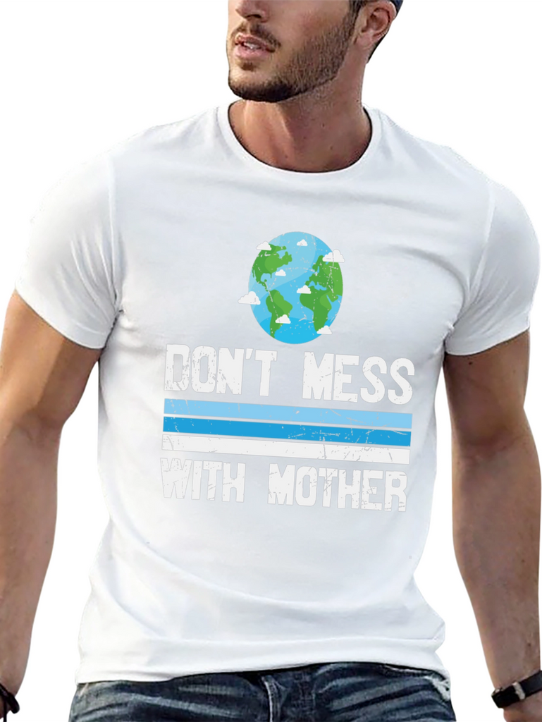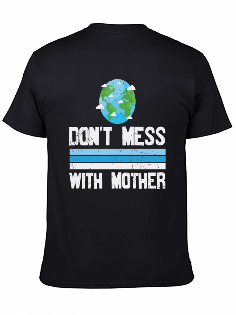 Show your support for environmental protection with this stylish black t-shirt. The design features a vibrant graphic of planet Earth surrounded by clouds, above the slogan "Don't Mess With Mother" in bold, distressed white lettering with blue lines. This tee is perfect for everyday wear, environmental events, or casual outings. Made from comfortable materials, this t-shirt is a statement piece that combines fashion with a powerful message. Make a positive impact and spread awareness about the importance of protecting our planet with this unique and eye-catching design.