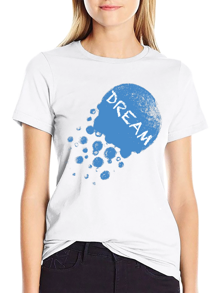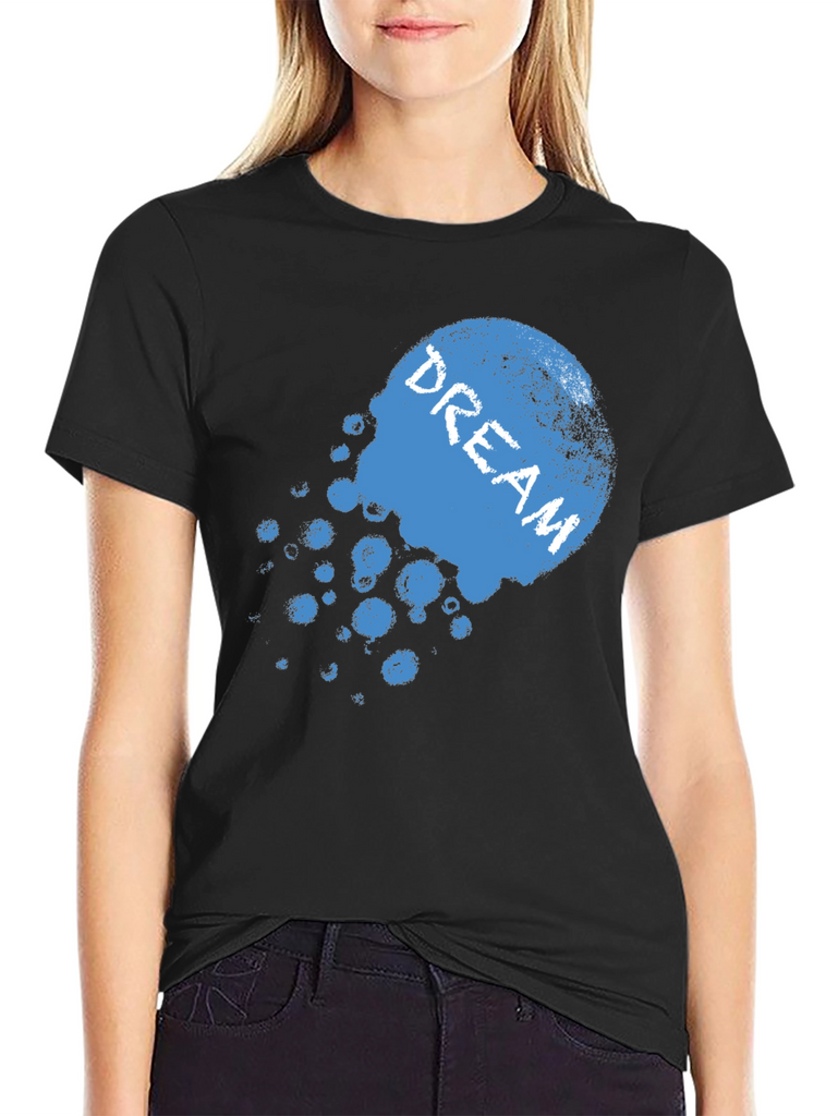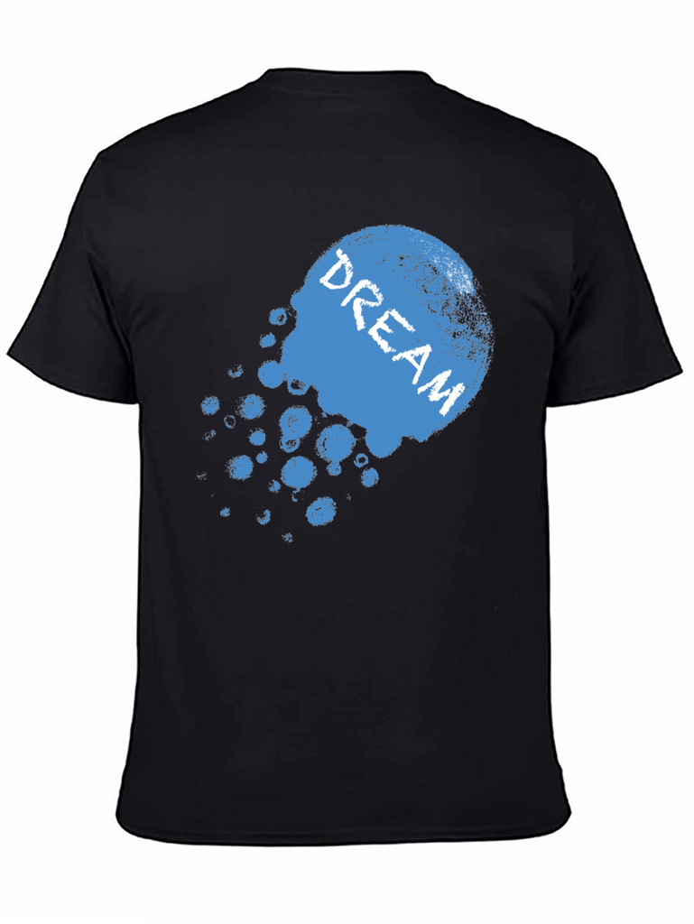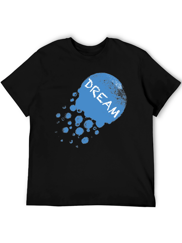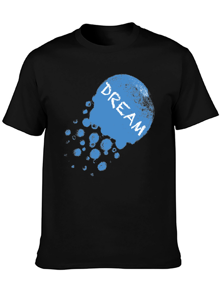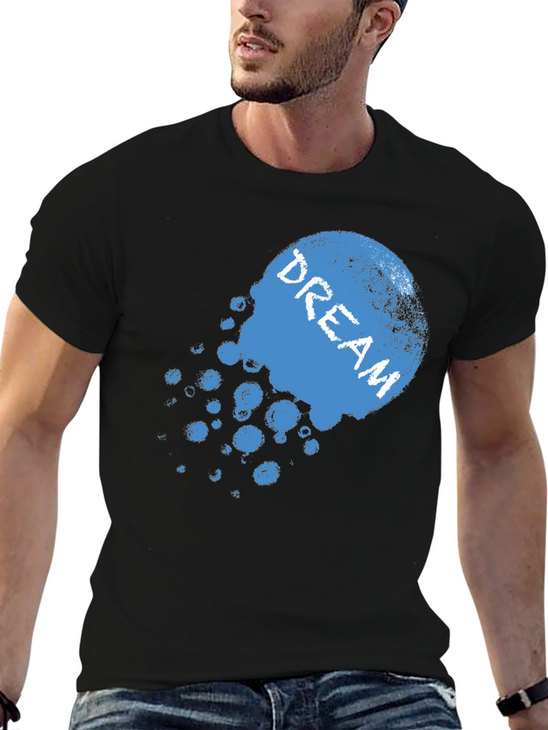 Express yourself with this striking black t-shirt. The design features a faded, blue graphic with the word 'DREAM' emblazoned across it. Made from a soft-looking fabric, this tee promises comfort and style. The relaxed fit is perfect for everyday wear, whether you're lounging at home or heading out with friends. Pair it with jeans or shorts for a casual yet fashionable look. This shirt is a great way to add a touch of personality to your wardrobe and showcase your individuality. Get yours now and start dreaming!